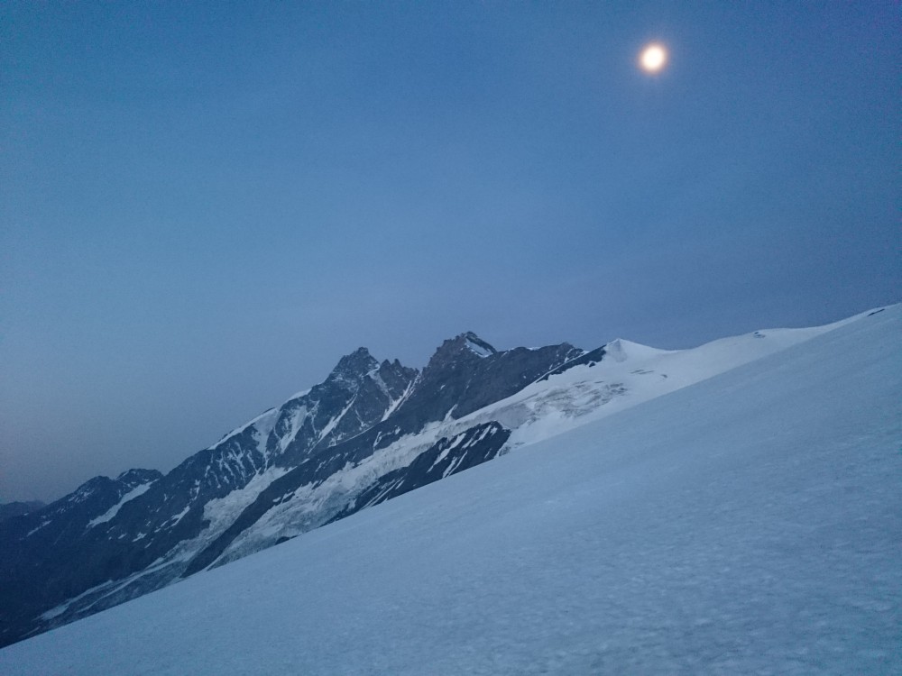 Pred dobrim tednom so bile razmere nad ledenikom Pastirci tako dobre, da smo se v te kraje podali kar še enkrat. V osnovi sem si želel napasti desno stran severovzhodnega pobočje malega Kleka (Kleingloknerkees) kjer bi bilo še okoli 1500 višinskih metrov povezane smučarije. No, z družbo smo se odločili, da raje ponovimo Johannisberg, saj je kar dosti krajša tura. Smučanje je pa še vedno zelo dobro.