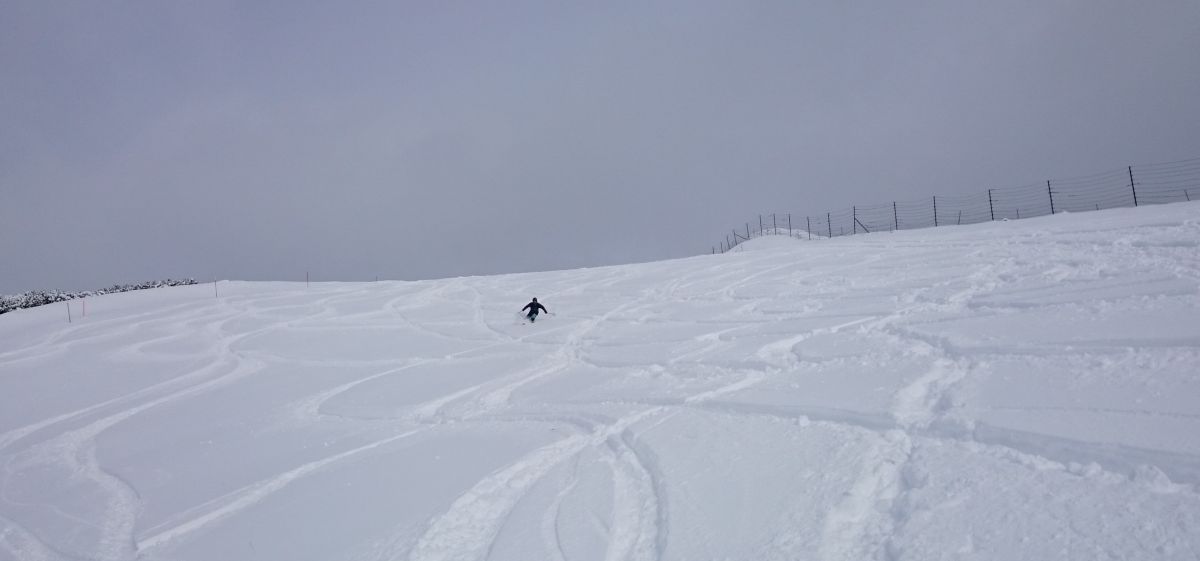 V soboto je snežilo, ker je prvi sneg na kopni podlagi, smo razmišljali o travnatih pobočjih. Na koncu smo se odločili kar za dobri stari Krvavec.