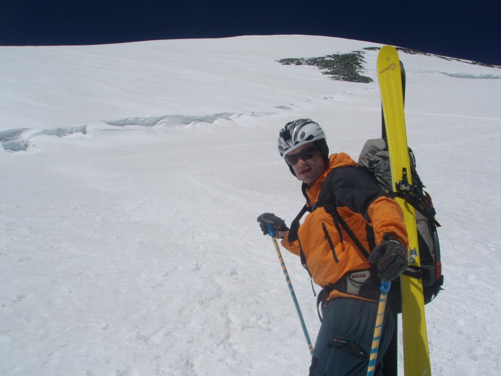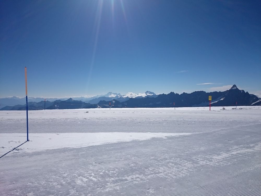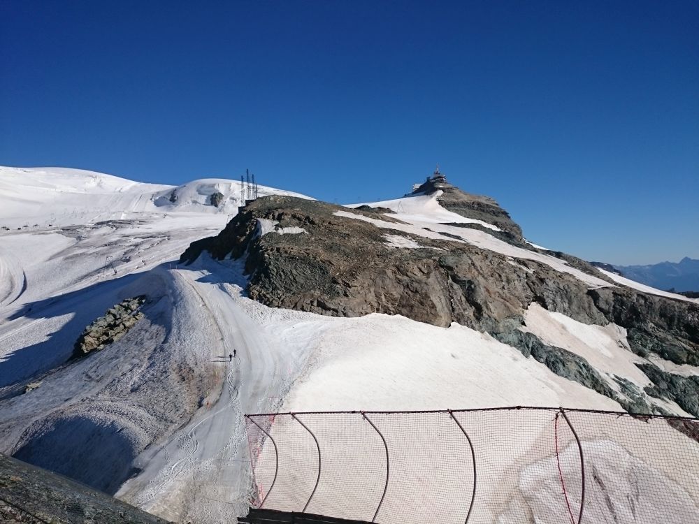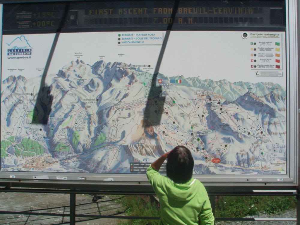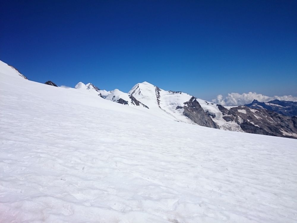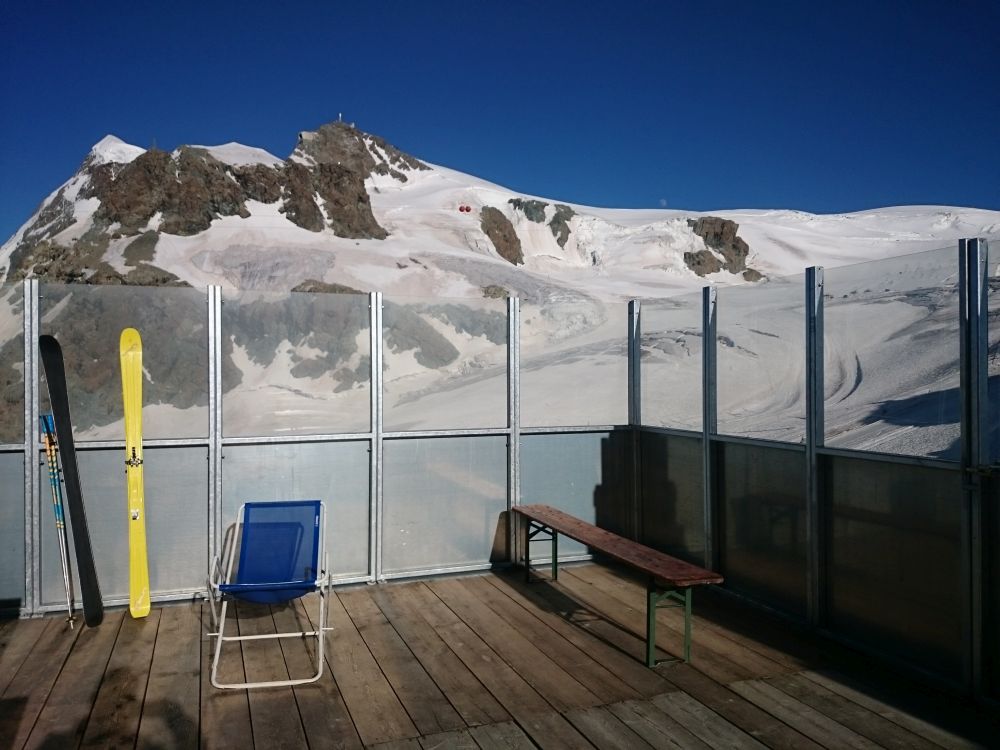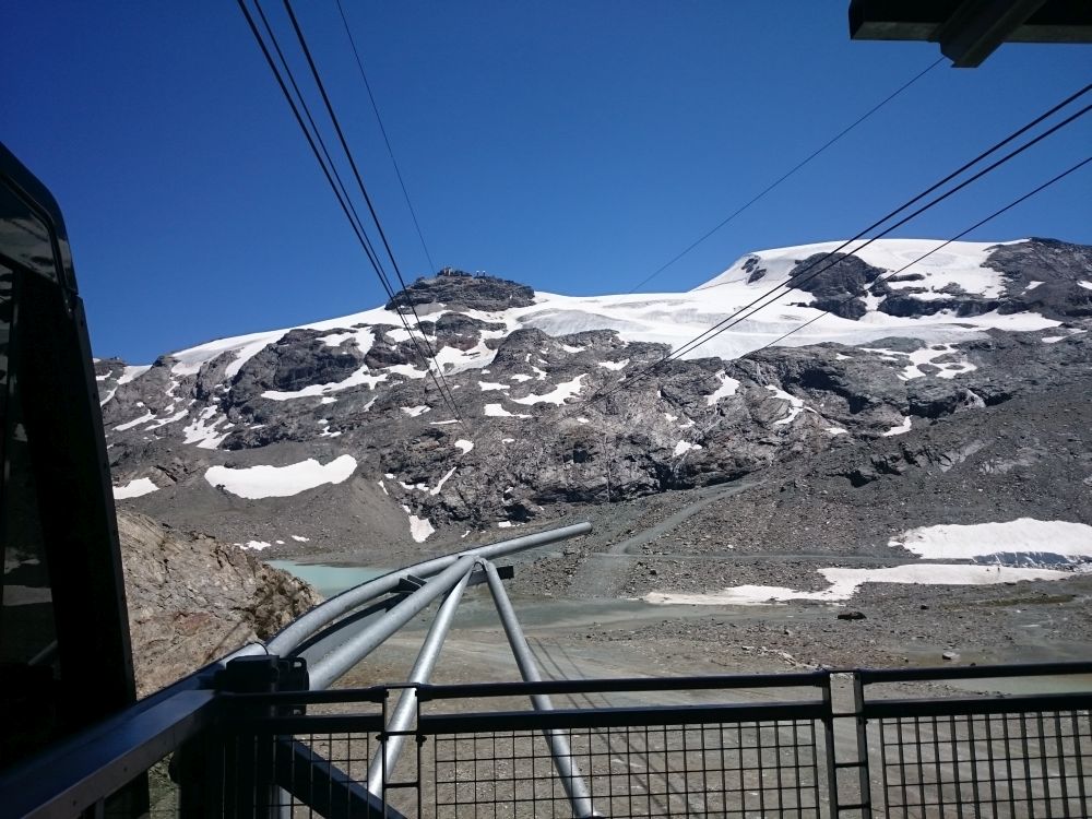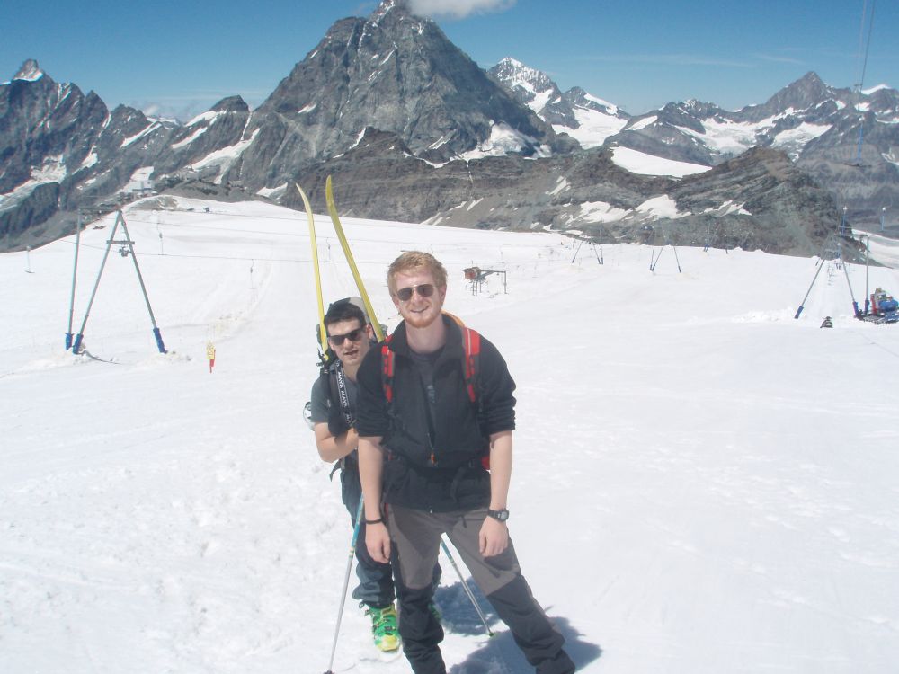 V ponedeljek 27.7. smo se ob 3h odpeljali iz Ljubljane. Vožna je trajal kakšno uro dlje kot smo pričakovali, saj smo malo pozabili na milanski zastoj, ki nastane okoli osme ure. Okoli dvanajste smo prišli v Cervinio. Bil sem edini smučar, tako da je bilo jasno, da zadnje gondole z Testa Grigie ne bomo ujeli. Namesto tega smo raje rezervirali kočo na smučišču na višini 3317m. Popoldan smo se podali proti Breithornu. Ker smo bili pozni smo srečali le nekaj sestopajočih, čaz plato in zadnjih 350 višinskih metrov, pa smo bili sami, tako da je bilo prav fajn. Vrh je bil kot ponavadi zelo vetroven in sem kar imel nekaj problemov pripeti smuči. Zgoraj je bil sneg glih prav odjenjan, tako da je bilo super. Le na platoju je ostal trd, tako da je malo treslo po nogah. Po smučišču je smuka seveda bila dobra. V koči je bilo prav luštno, vendar nas je hitro dobil spanec, tako da smo se pospravili v posteljo. Prijatelja sta malo potegnila spanje, jaz pa sem še enkrat krenil na Breithorn, saj je vreme bilo dobro, smuka pa tudi. Tokrat sem šel čez sedlo med obema vrhovoma. Veter pa je bil še hujši kot prejšnji dan. Odsmučal sem vse do koče in se skupaj s kolegoma podal nazaj do gondole. Sredi dneva smo bili že nazaj pri avtu. Po kosilu smo se odpeljali proti Alagni.