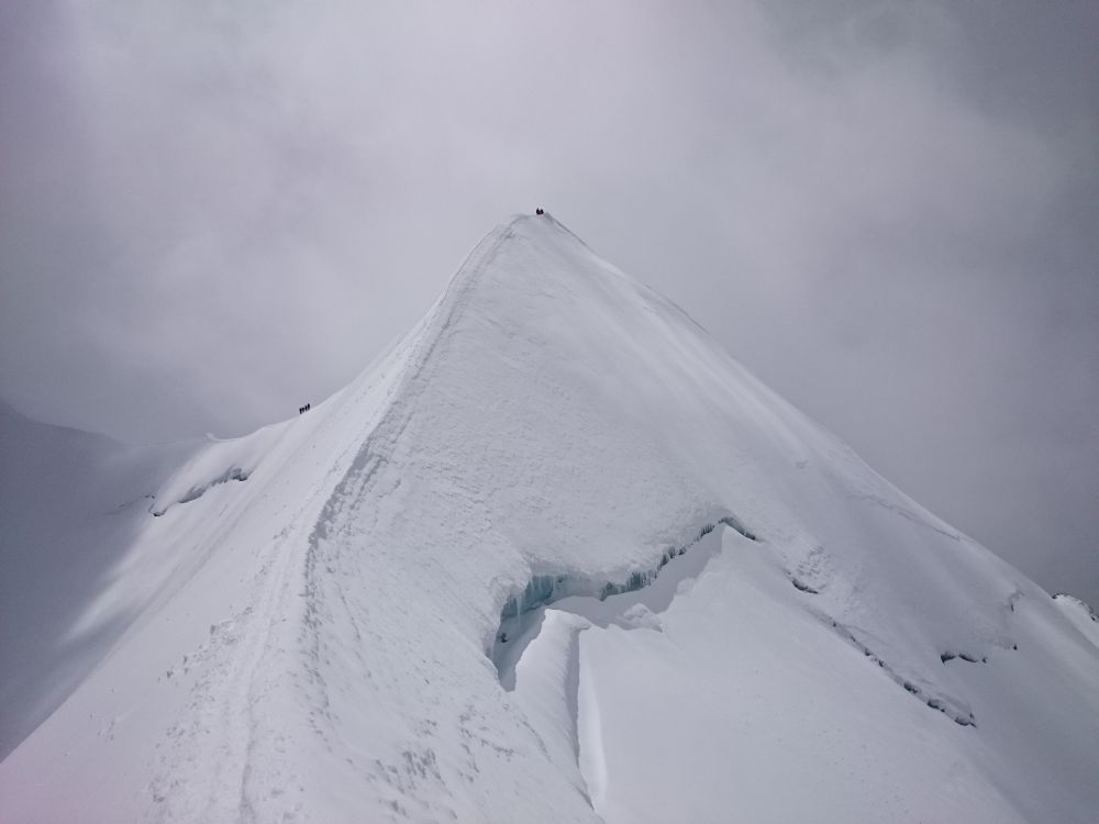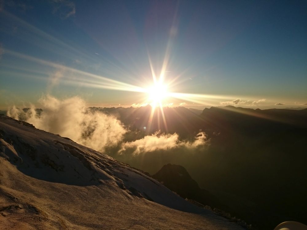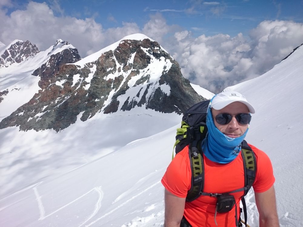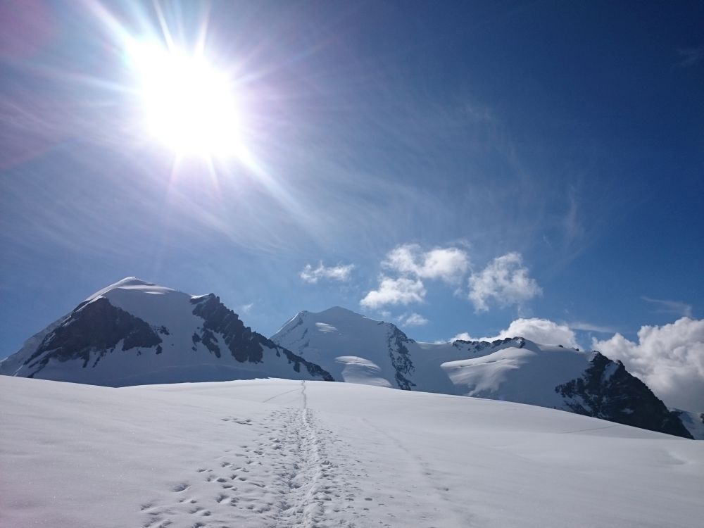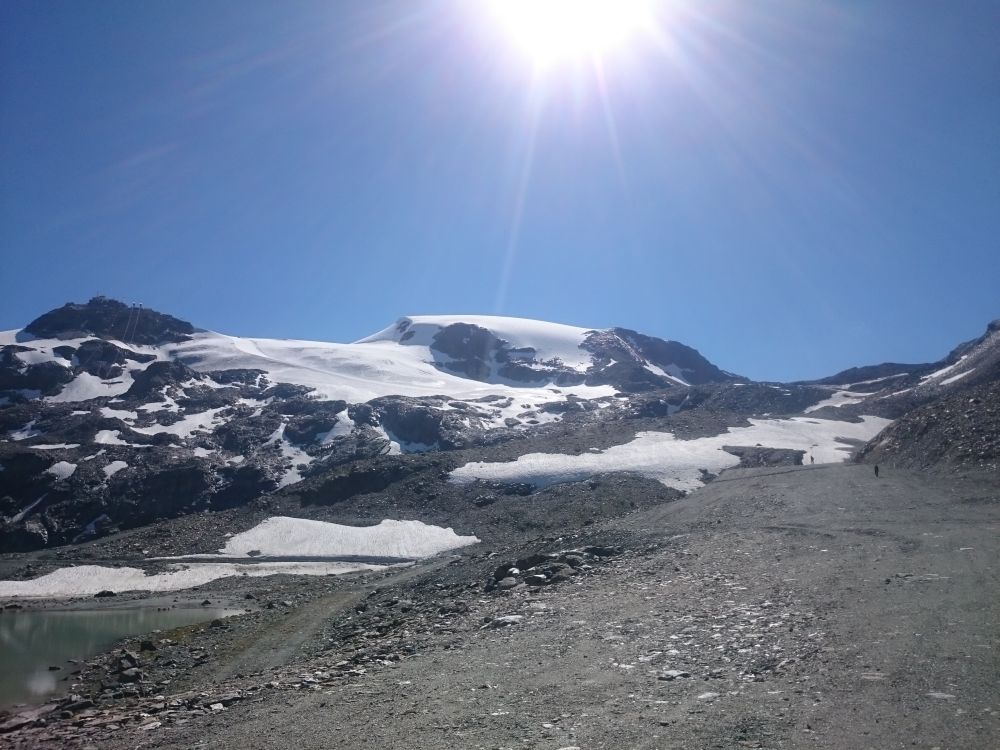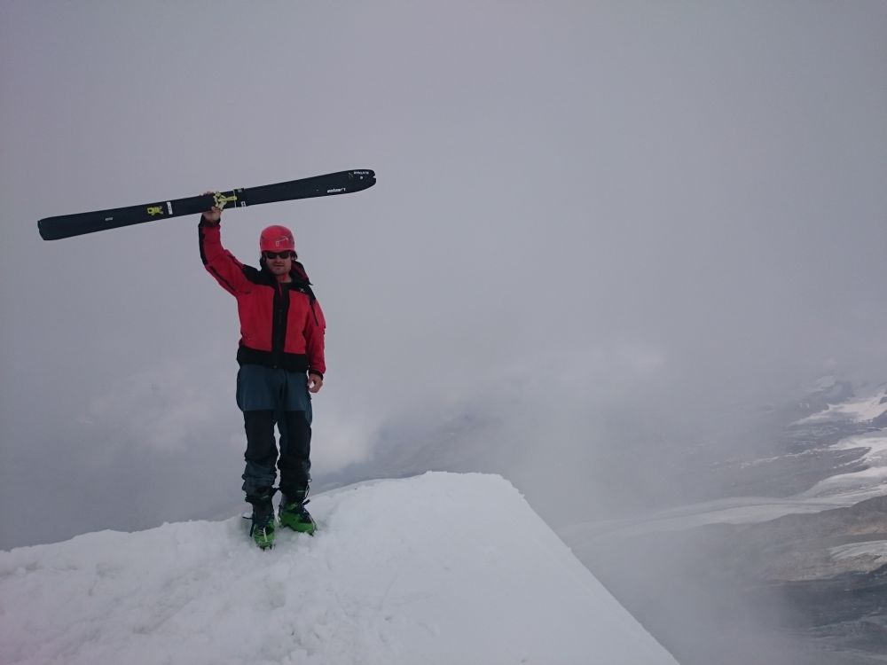 Prejšnji torek smo se zgodaj zjutraj odpeljali iz Ljubljane, tako da smo se izognili Milanski jutranji gužvi in že okoli 10h pripeljali v Cervinio. S pomočjo gondole smo bili hitro na Testa Grigi. Najprej sem odsmučal do koče Teodulo, nato pa nazaj peš proti Breithornu. Pri gonodoli sta me čakala prijatelja in skupaj smo se podali na pot. Snega je v teh krajih več kot lani, tako da se tudi pri Matterhorn platoju nismo navezali. Približno 200 višinskih metrov pod vrhom nam je malo zagodil vreme, saj je v daljavi že nekaj garmelo in proti Monte Rosi so bili kar temini oblaki. Prijatelja sta se raje obrnila, saj sta bila peš in v nevihti ne bi bilo fino. Na vrhu sem bil sam in prvič tudi v brezveterju, tako da je bilo kar prijetno. Vreme se je malo izboljšalo, tako da je bila vidljivost dobra. Nekaj zavojev je bilo še bolj po tršem snegu, nato pa je bil sneg že južen, ki pa je bil zelo lepo smučljiv. S platoja sem kar hitro odsmučal s proge desno na pobočje Klein Matterhorna in v super snegu odsmučal do spodnjega dela smučišča. Prečil sem in se zapeljal do koče.