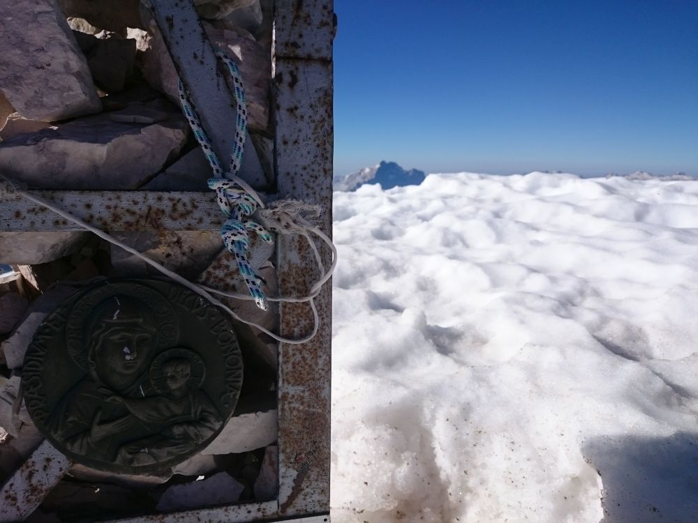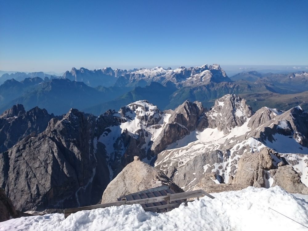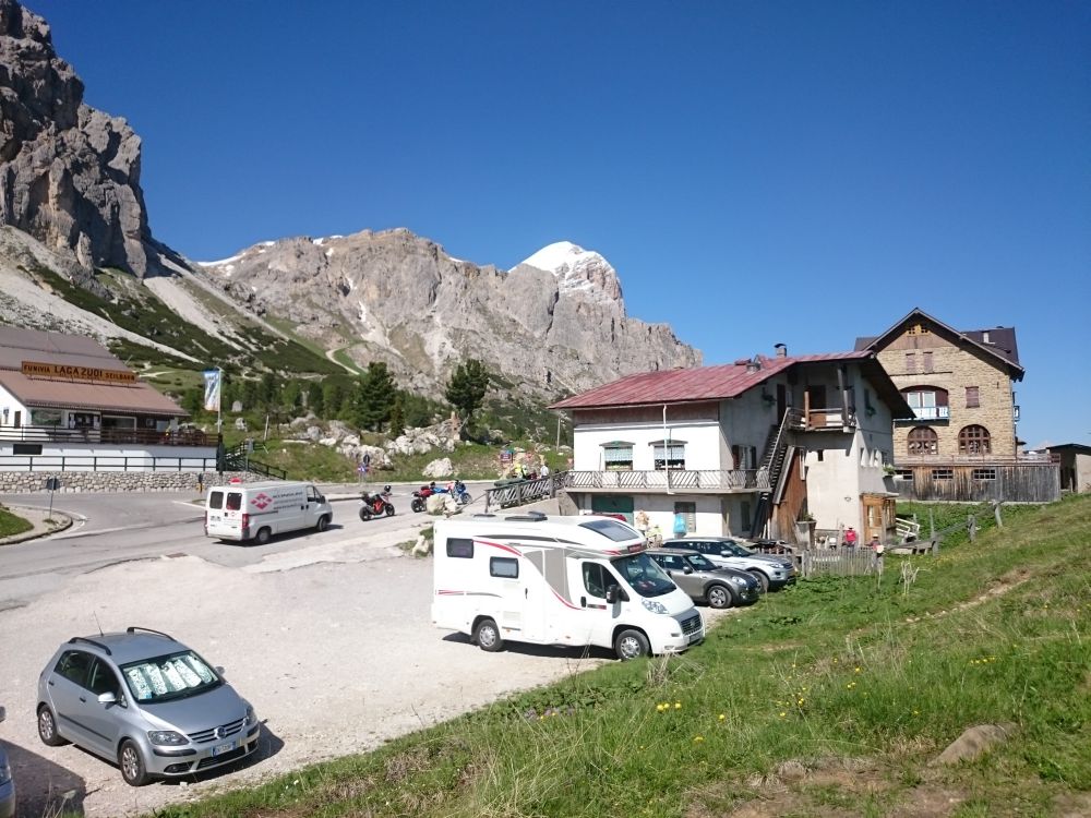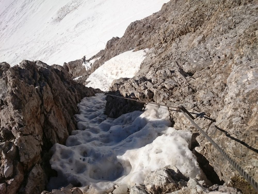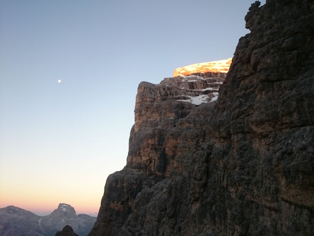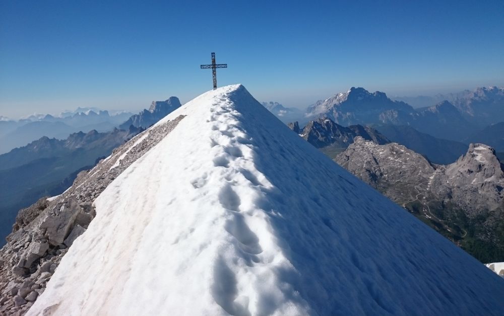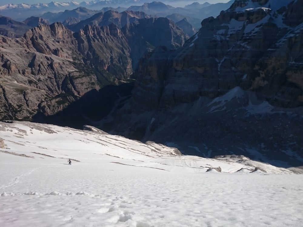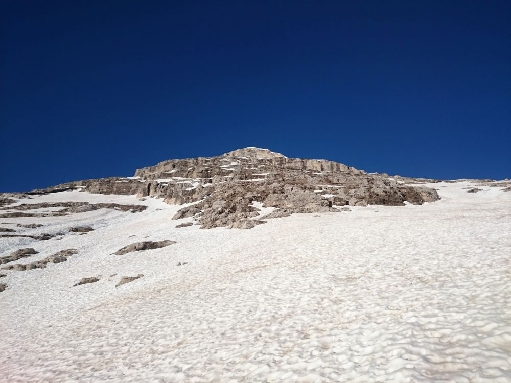 Vremenska napoved je napovedovala lep in topel prejšnji teden, tako smo pred 30+ stopinjami pobegnili v višje kraje in za uvod v koledarsko poletje izbrali italjanske Dolomite. Letos je tudi tam še kar veliko snega in izbrali smo take ture, ki še omogočajo turno smuko. Dva turna smučarja, en pešec in vsa roba pa je bil avto poln.