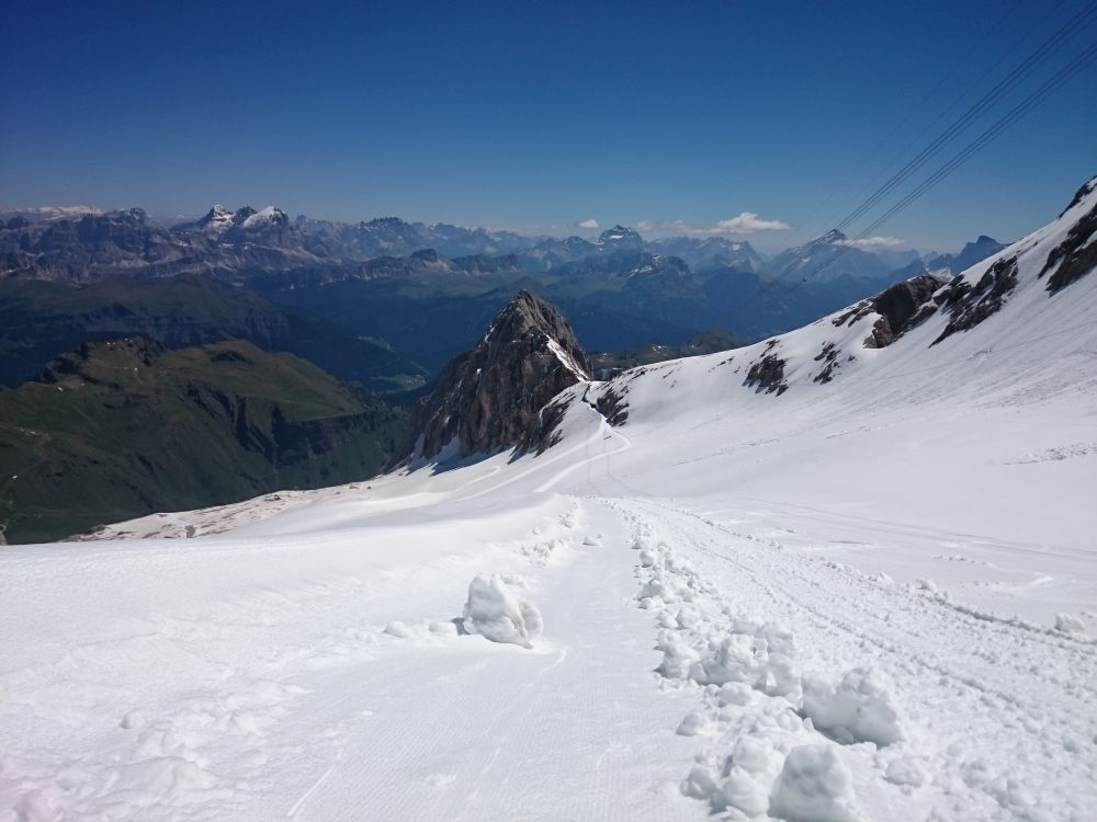 Za uverturo v Dolomitsko dogajanje smo se v torek iz Ljubljane pripeljali na Passo Pordoi in se z gondolo odpeljali na Sass Pordoi (cena povratne karte je 17€). Od tu sva odsmučala na Forcello Pordoi počakala prijatelja in skupaj smo se podali na Piz Boe. Nad cca. 2800m je bilo še vse zasneženo v dolini Lasties pa že dosti nižje, tako sva z vrha odsmučala v dolino Lasties. Prismučala sva pod 2600 m in skupno nabrala skoraj 700 višisnkih metrov smučanja. Nad približno 2700m je bil novi južni sneg, tako da bi brez turnosmučarskih kož kar težko pririnila nazaj na Sass Pordoi. Ker smo bil pozni, nisva ponovila spusta.