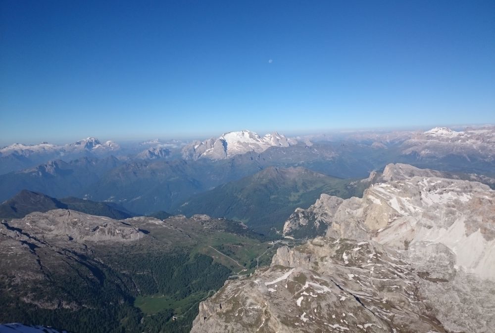Snega je predvsem na severu Marmolade še kar nekaj, nad zgorno postajo stoječe žičnice bo vrjetno smuka mogoča še kar nekaj časa. Tudi koluar med malim in velikim Vernelom bo še smučljiv. Pobočje omogoča, kar nekaj različnih spustov. Tudi Sass Pordoi, z dolinama Lasties in Mezdi, bo še uporaben. Ostale ture pa vrjetno kmalu ne bodo več smučarsko zanimive.