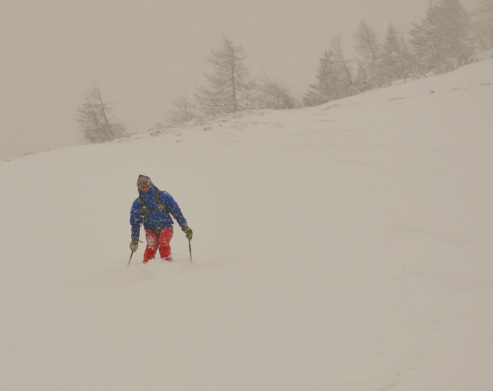 Pršiča precej, do planine super, potem pa veter klože itd.. Redko kdaj me zebe ampak tokrat sva obrnila zaradi hudega severovzhodnika.  Razmere bodo naslednje dni zelo čudne, ali bo super, kake zatišne lege, ali pa bo nevarno na na napihanih območjih. Skratka pršičast zaključek leta.