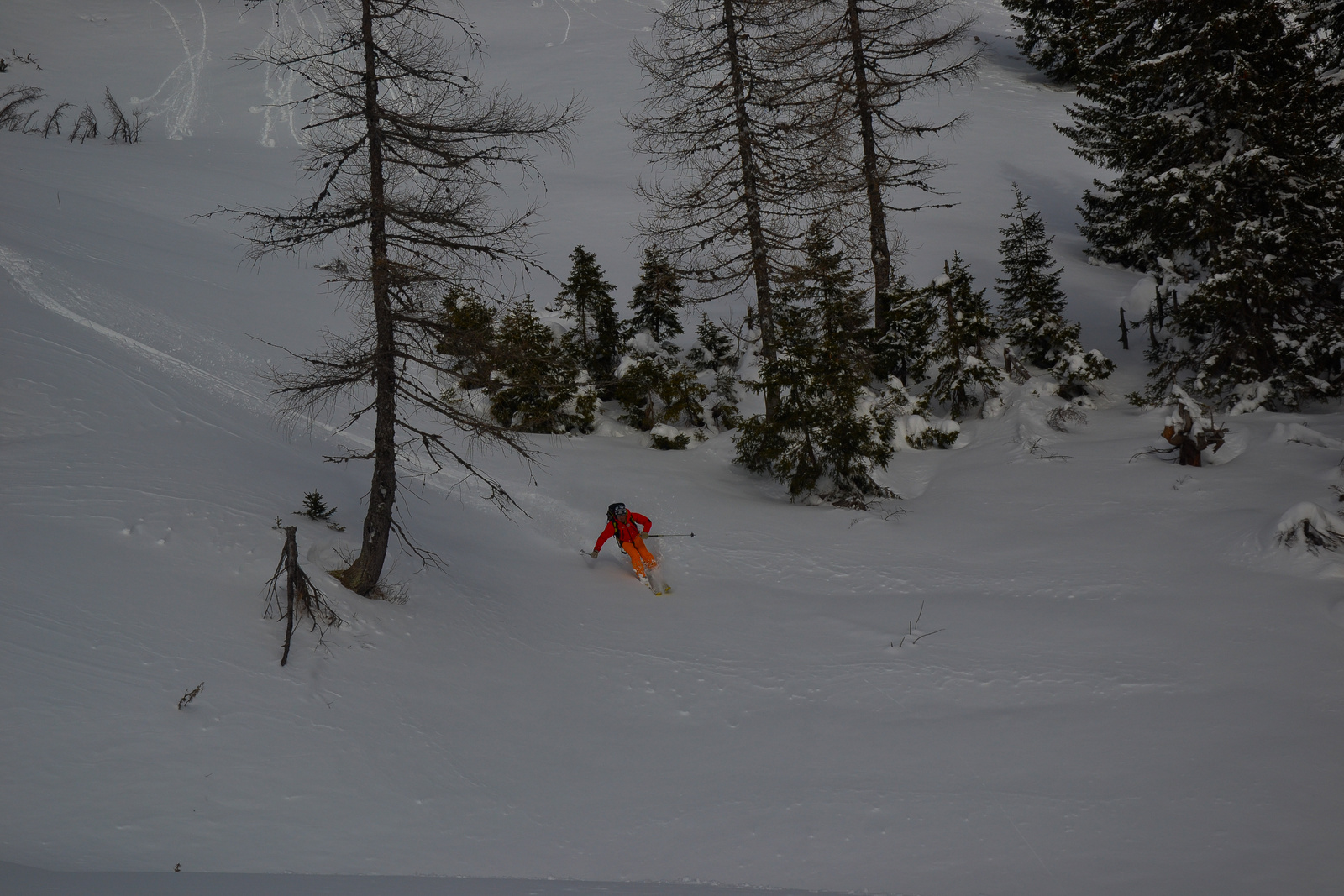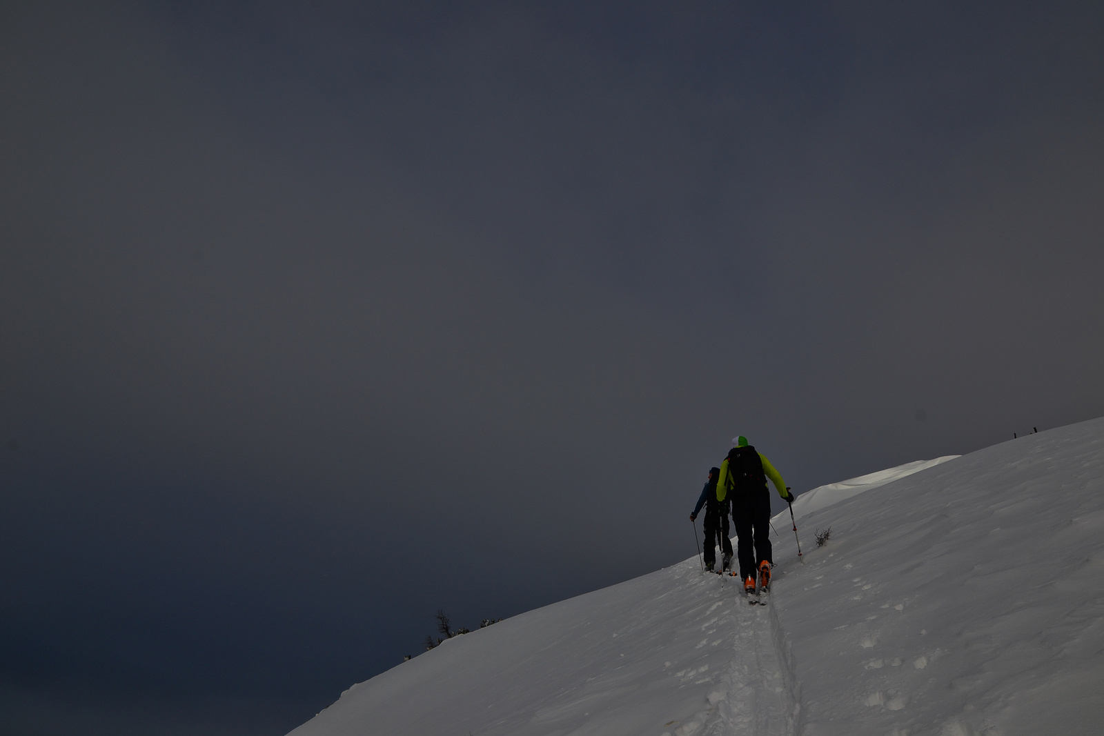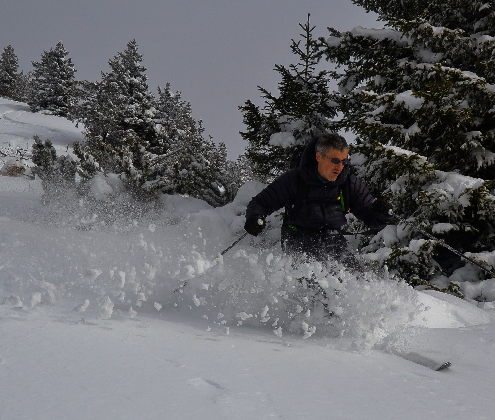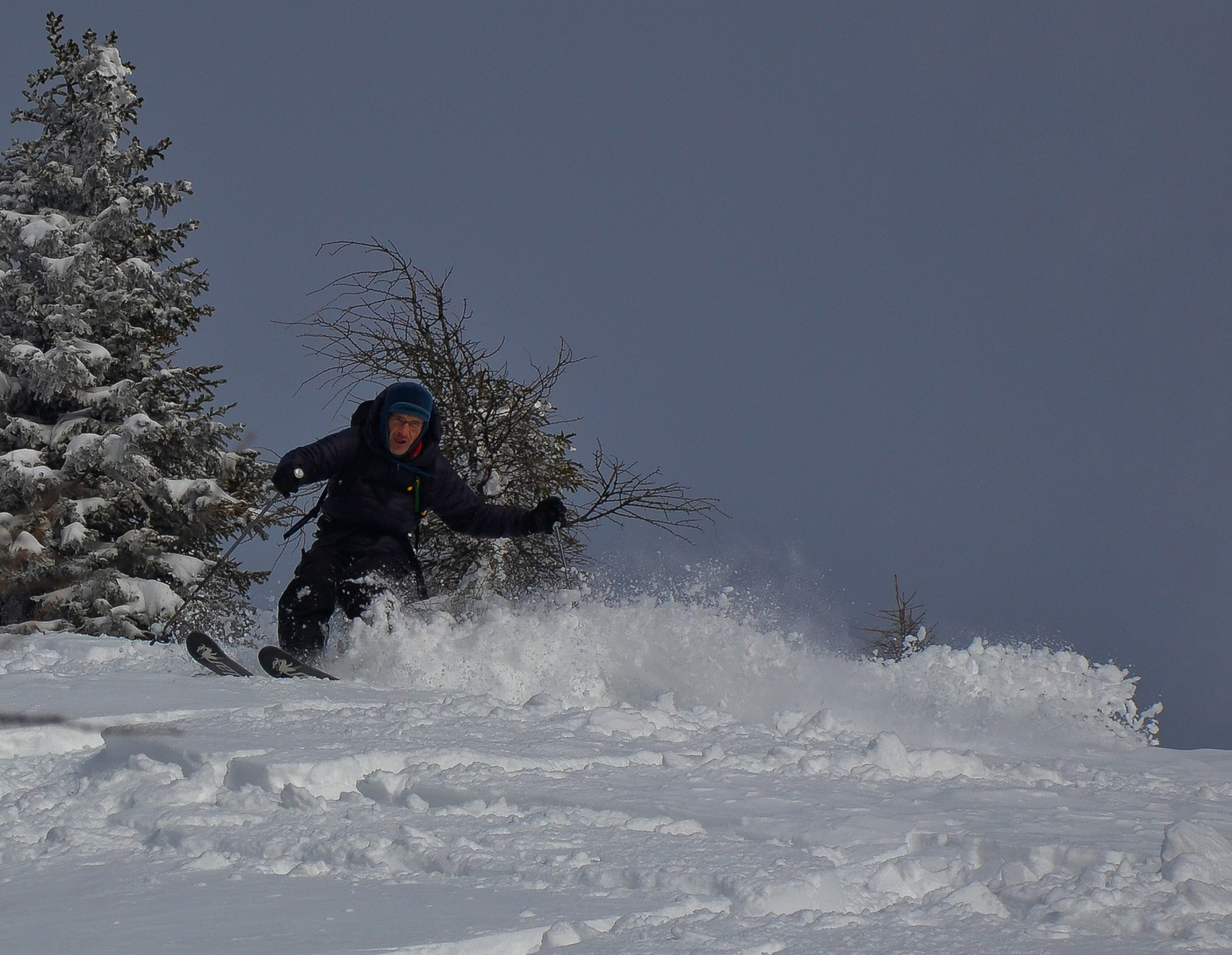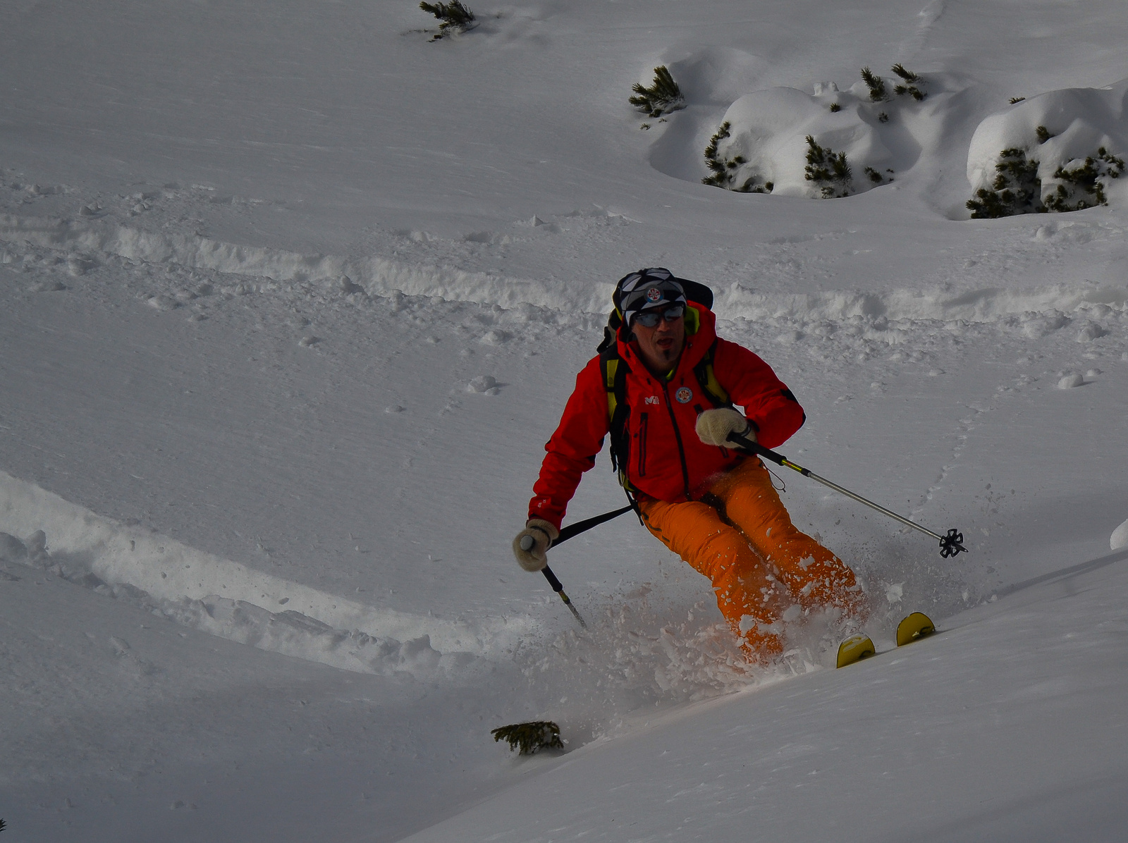 Končno spet z Žigom skupaj. Nekako nama rata uskladiti potrebe po pršiču, analitično za nosom, pa veter sneg itd.Tokrat šla na domač kucl nad najlepšim mestom na svetu. Gazila k nora, vendar bila poplačana s norim smučanjem. Severovzhodni veter je včeraj moral odlagati sneg nekam. Le poiskati ga je bilo treba. Itak kasneje ni manjkal Miro Podgoršek, ki je svoje taktiziranje s gaženjem plačal s Staropramen pri avtu. Vmes pa še gsm od Petra, ki si ni mogel upreti mamljivi skušnjavi. Uživali Jure, Žiga, Miro, Peter