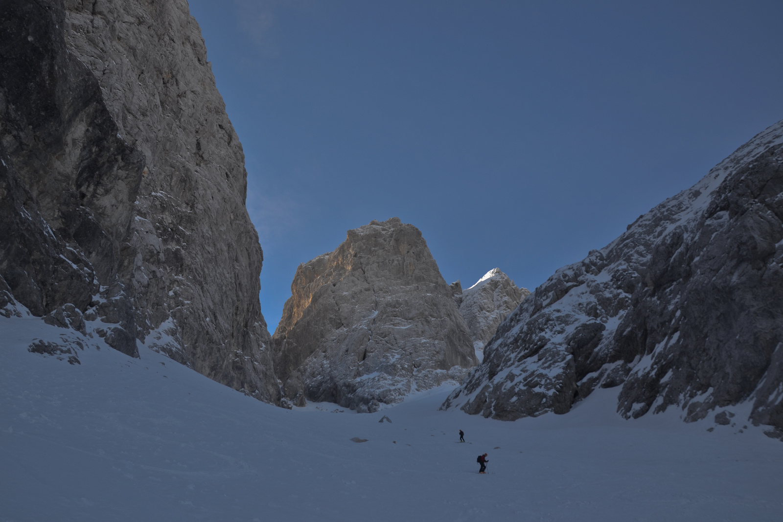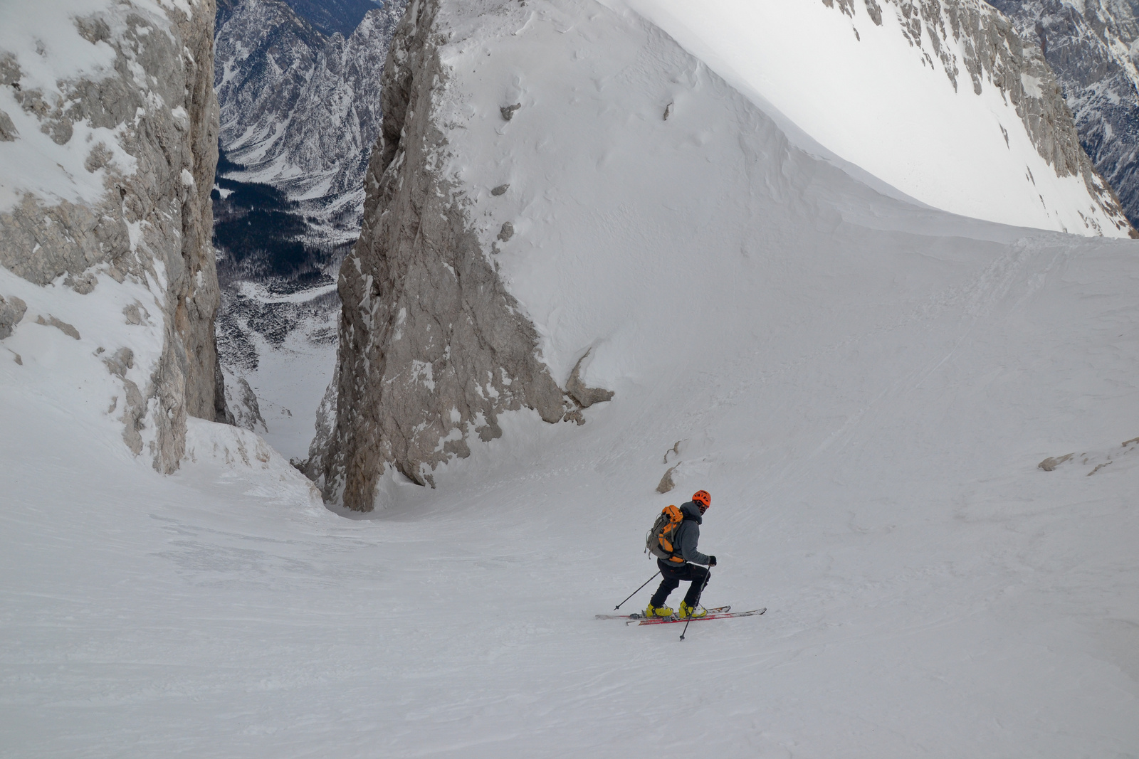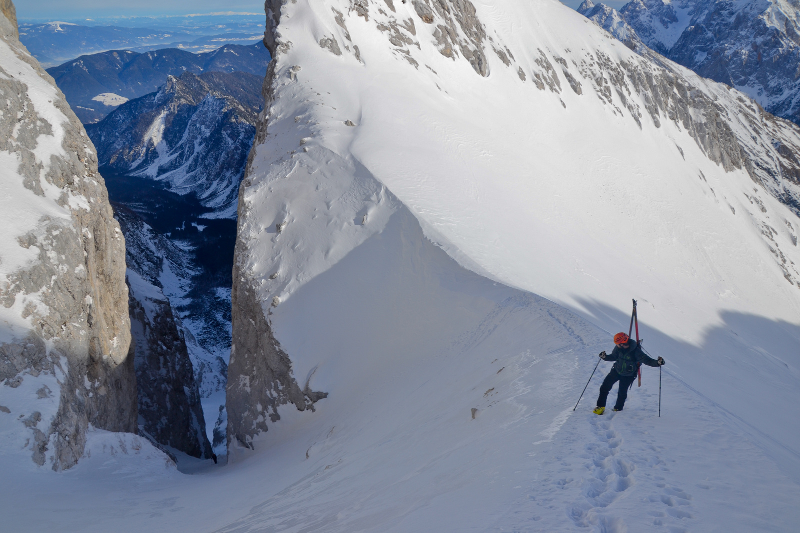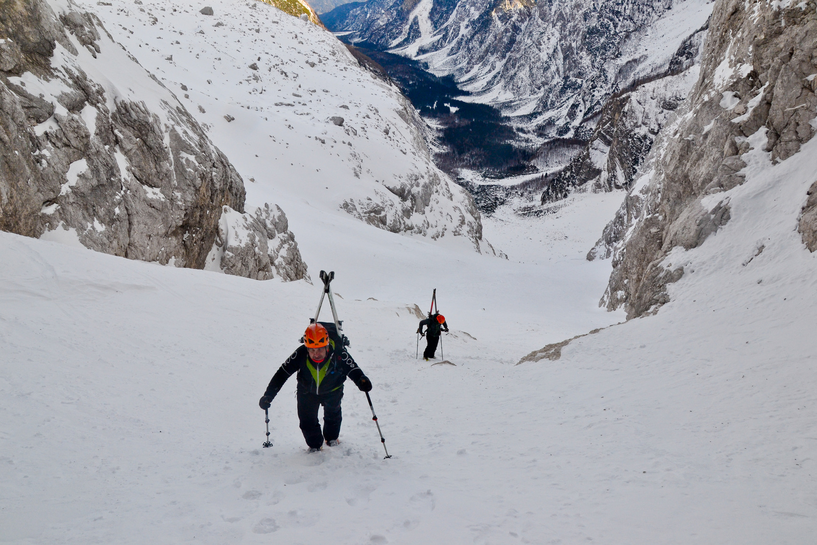 Včeraj nikakor nismo mogli sestaviti avta za Avstrijo, zato sva jo z Mirotom danes zastavila kooončno seveda še midva v Jalovčev ozebnik. Parkplac Planica, potem pa skozi na smučeh do pod vstopa. Snega dosti za hojo. Dereze in gas na vrh. Štapen ni bilo več, No nekaj se jih je najdlo.. Na vrhu počitek, potem pa skupaj s sotrpinom v dolino. Pas v najožjem delu je lepo leden, poabručali, spodaj pa norija..Super smučarija, ki se konča na odcepu za letno pot. Nižje dol pa Zdrava Marija da kante ostanejo na smuči. Rehidracija v tamarju in lepo na skate domov- Uživala Jure, Miro in Aleksander