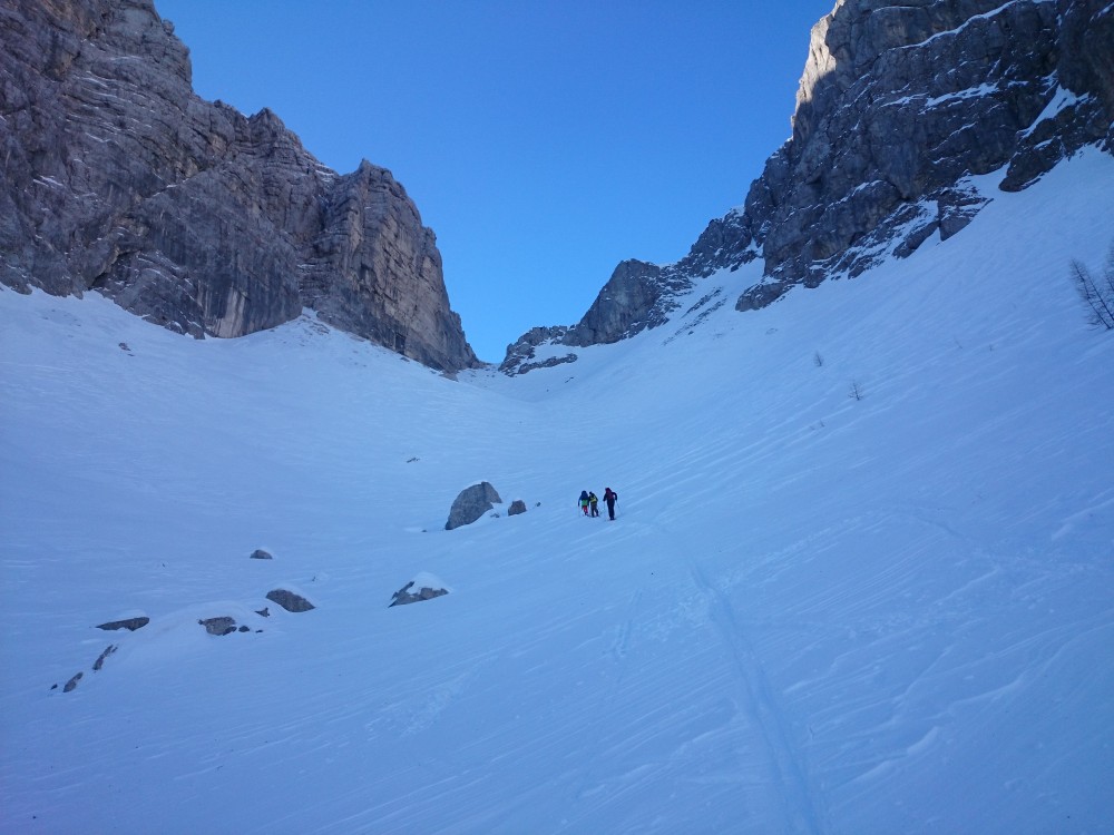 Osnova ideja za današnjo turo je bil štart na planini Blato in od tam na Kanjavec, smuka pa v Velsko dolino in naprej v Krmo. Vendar cesta do Blata še ni najbolj primerna za “avtocestni” promet, tako je sledila kar različica iz Krme v Krmo. Cesta v Krmo je bila ledena, vendar smo se le pripeljali do Graž. Kljub temu, da letos snega res ni v izobilju, se je dalo, s smučmi, lepo hoditi vse do Bohinjskih vratc. Spust na Velo polje je bil kar trd, že malo leden. Kljub vsemu smo lepo pri vijugali na sonček. Pritrdili smo kože in jo pobrisali v Velsko dolino. Tu je bil vzpon prijeten, saj so kože lepo držale. Le pod Hribarcami je bilo bolj tako tako. Zadnji del vzpona je malo motil južni sneg, ki se je podiral. Del ekipe je odsmučal v smeri pristopa. Eden pa je odsmučal na Doliča. Vse do Velega polja smo smučali po dobrem južnem snegu. Sledil je vzpon na Bohinjska vratca. Od vratc do zgornje Krme, je bila sumka dobra, le na trenutke je malo motila skorja. Nato je sledil simpatičen rodeo do Pleše. Tu smo prečili v levo in po levi obšli borovce. Skozi gozd je bilo kot James Bond na bob stezi. Prismučali smo do avta.