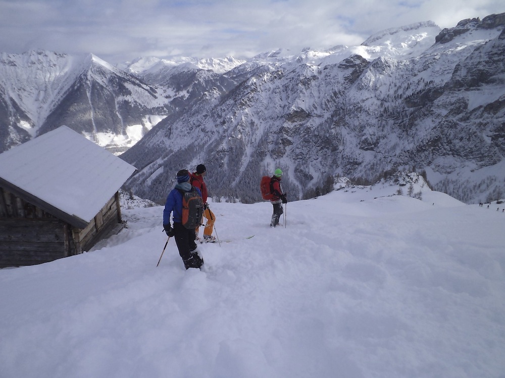 No in končno je prišel dan, ko smo se srečali z pravim snegom. In to veliko snega! Sicer malo več vožnje naprej iz nam bližnje Koroške, skozi oba tunela, tam kjer pozimi vedno sneži. Izvoz Flachau Winkel, deset minut vožnje ob avtocesti nazaj proti tunelu, pa smo tam. Začetek na približno jurja višine skozi dolgo , lepo dolino skoraj po ravnem ,nam vzame slabo uro preden se začnemo vzpenjat. To nas ne moti, kajti čudovito je opazovati lepo zasneženo naravo.Do vrha škrbine pod Liebeseckom nam vzame še dve uri umirjene hoje, pri čemer se ne moremo odločiti po kateri strani se bomo spustili. Pod vrhom škrbine poplazeno pobočje po katerem se vzpnemo na vrh škrbine oz. pod vrh. Snega(pršiča) pod vrhom vsaj 60 centi, zato hitro pripravimo za spust, kajti ob pogledu navzdol nam je jasno, da če ne bomo hitri, ne bomo hriba razdevičili danes. Seveda so se začele valiti skupine turnih smučarjev navzgor,Avstrijcev, Nemcev. Ampak Slovenci smo bli prvi gor to jutro in treba ga je bilo prerezat. Odsmučamo v dolino desno, ne po smeri pristopa, kar je bil spust v neznano ampak kot smo videli na koncu, pravilna odločitev. Dolga in strma flanka po pol metra pršiča, eno samo vriskanje in tuljenje dobrih 20 minut. Pol telesa v snegu, pol zunaj, nasmeški na obrazih.hvala Jure. Turo končamo pri avtu z zasluženo osvežitvijo.