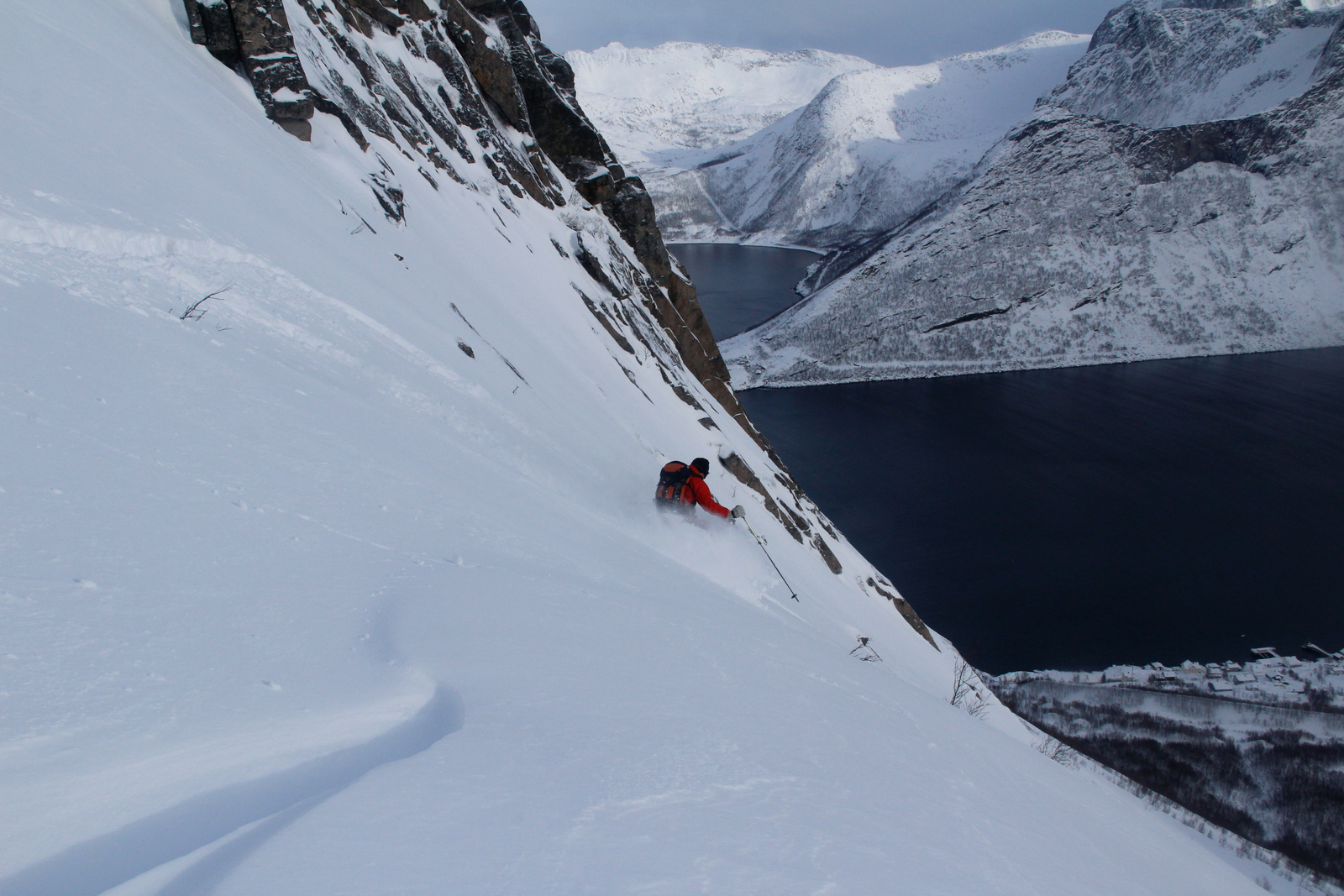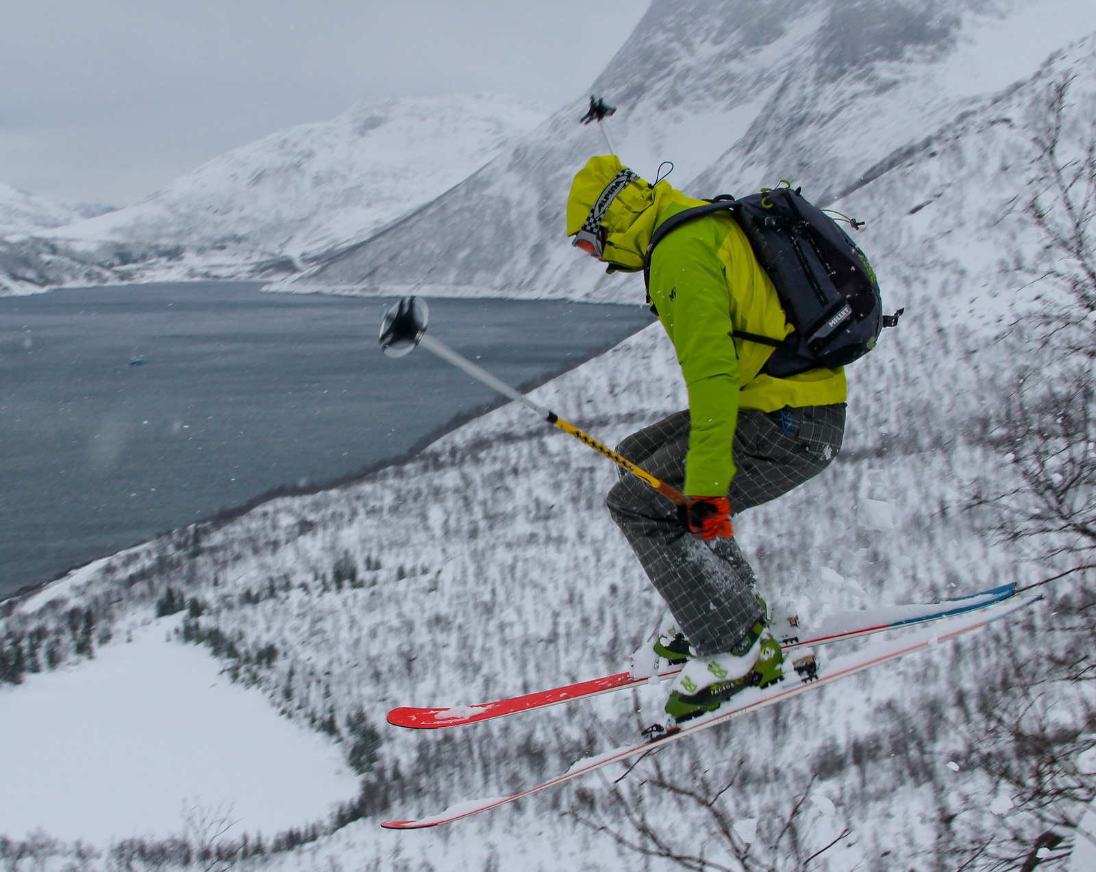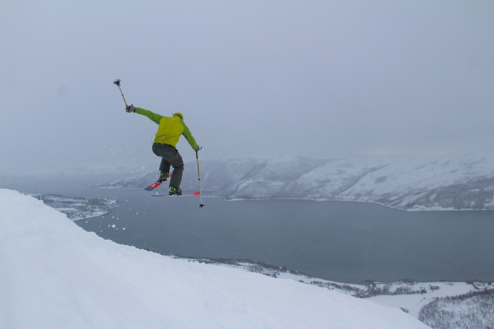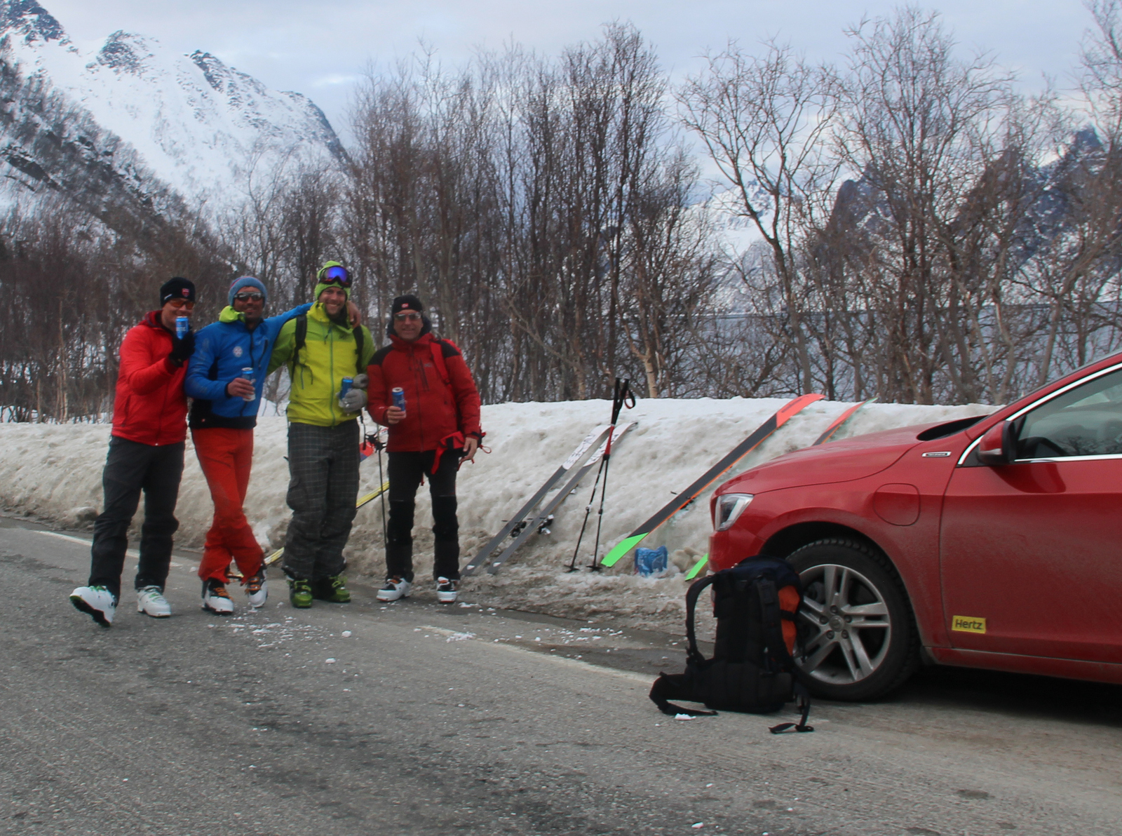 Dolgi meseci planiranja, so skoraj padli v vodo, ko nam je na Lofotih 2 dni pred odhodom pobralo sneg. Na srečo smo preko FB in prijateljev s Bric ferajna našli otok Senja. Sicer slike niso kaj prida obetale, vendar smo se odločili reskirati. Da ne bi bilo vse lepo so nam izgubili prtljago. tako smo prvo noč prećiveli na letališču Narvik, v družbi dobrega viskija, sira in kolegov s Tirolske (brez prtljage). Pot do otoka Senja naslednji dan je bila spet dogodivččina, malo pred bajto smo v trenutku lepega vremena vidli flanko in se pognali v hrib. Brin je prvič smučal v polarnem krogu, pa se je odločil da gre v kavbojkah, tako smo se vsi odpravili na prvi kucl. Itak pršič.. Vreme nad 69 vzporednikom je pač tako, megla, sneg, sonce, veter v eni uri. Naslednjih 10 dni smo dozivljali dogodivščino eno za drugo, smeh, menjava 15kg rib za liter šnopca z lokalnimi ribiči, deviške flanke, krasne ceste, lepi koluarji, RD žurka..Nekako so nas po parih dneh spoznali tudi firerji po otoku 🙂 Pivo pač v trgovino za 3 eur, Volvo 4×4 hybrid služil super., vozili ozebnik, kjer so snemali Epic tv, Tone pa ga je na hitr zgazil brez sponzorjev. Na koncu smo po mojem mnenju doživeli za moj okus najbolj odbit trip do sedaj. Uživali Jure, Brin, Fajfar, Vojc, Tone in Uroš