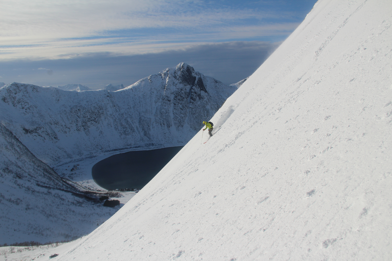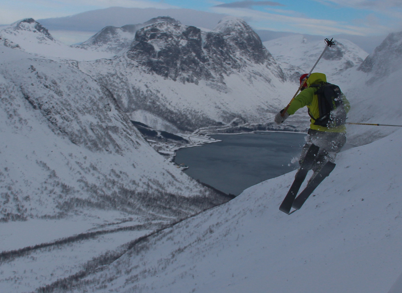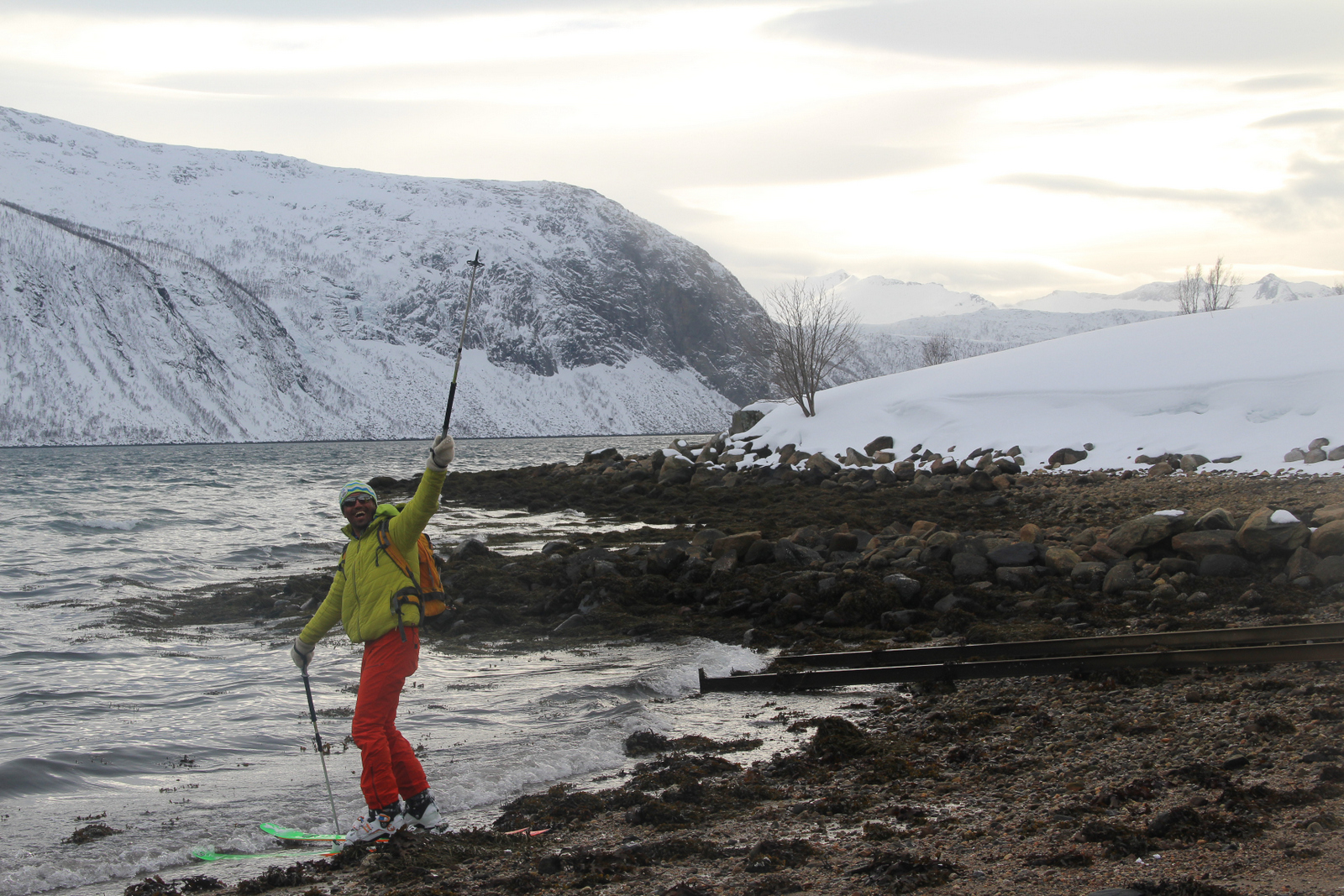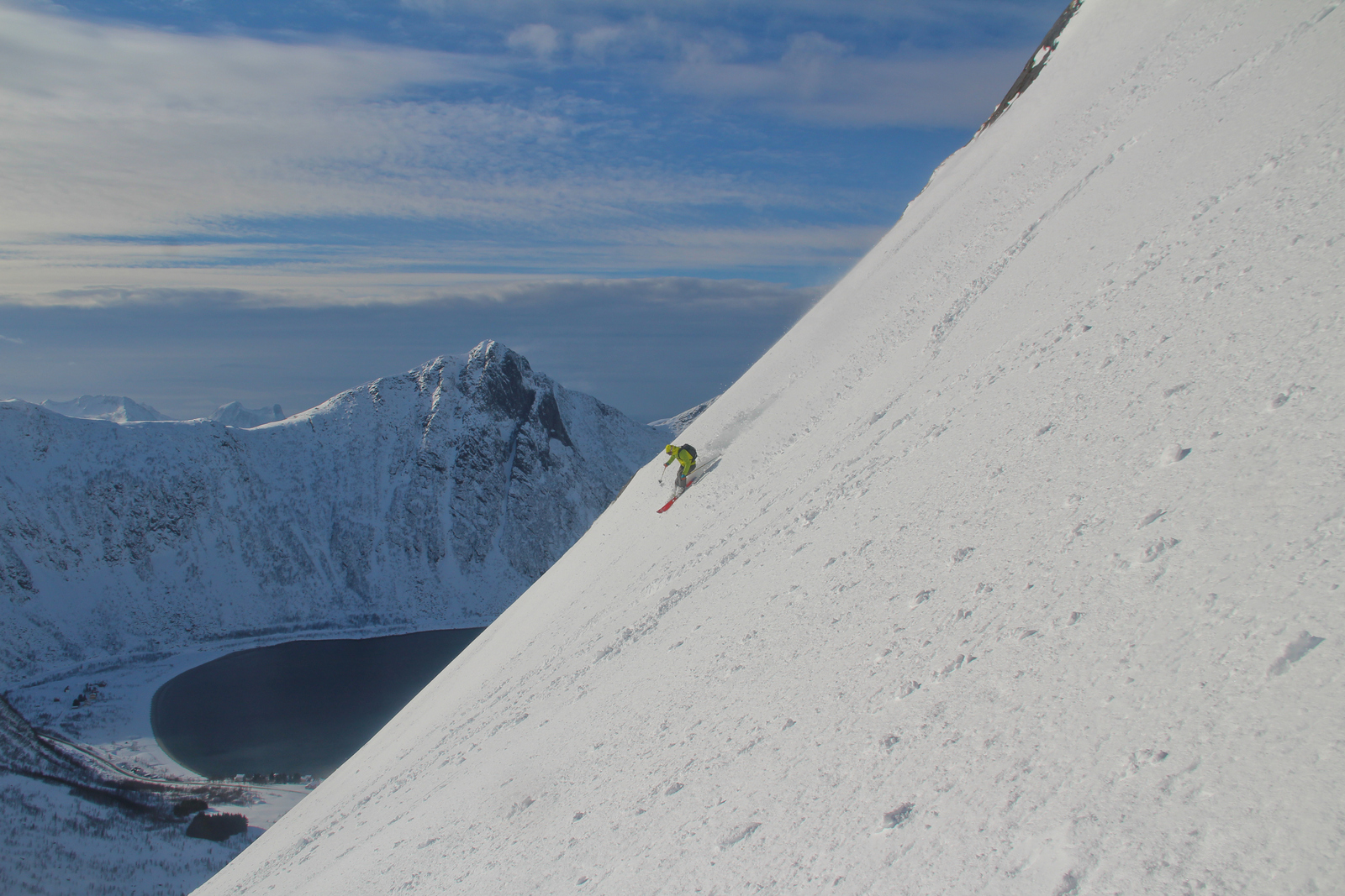 Dolgi meseci planiranja, so skoraj padli v vodo, ko nam je na Lofotih 2 dni pred odhodom pobralo sneg. Na srečo smo preko FB in prijateljev s Bric ferajna našli otok Senja. Sicer slike niso kaj prida obetale, vendar smo se odločili reskirati. Da ne bi bilo vse lepo so nam izgubili prtljago. tako smo prvo noč prećiveli na letališču Narvik, v družbi dobrega viskija, sira in kolegov s Tirolske (brez prtljage). Pot do otoka Senja naslednji dan je bila spet dogodivččina, malo pred bajto smo v trenutku lepega vremena vidli flanko in se pognali v hrib. Brin je prvič smučal v polarnem krogu, pa se je odločil da gre v kavbojkah, tako smo se vsi odpravili na prvi kucl. Itak pršič.. Vreme nad 69 vzporednikom je pač tako, megla, sneg, sonce, veter v eni uri. Naslednjih 10 dni smo dozivljali dogodivščino eno za drugo, smeh, menjava 15kg rib za liter šnopca z lokalnimi ribiči, deviške flanke, krasne ceste, lepi koluarji, RD žurka..Nekako so nas po parih dneh spoznali tudi firerji po otoku 🙂 Pivo pač v trgovino za 3 eur, Volvo 4×4 hybrid služil super., vozili ozebnik, kjer so snemali Epic tv, Tone pa ga je na hitr zgazil brez sponzorjev. Na koncu smo po mojem mnenju doživeli za moj okus najbolj odbit trip do sedaj. Uživali Jure, Brin, Fajfar, Vojc, Tone in Uroš