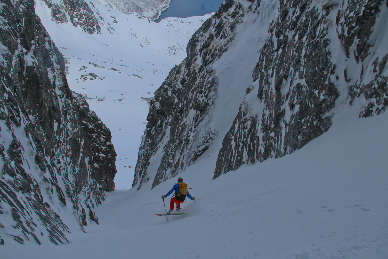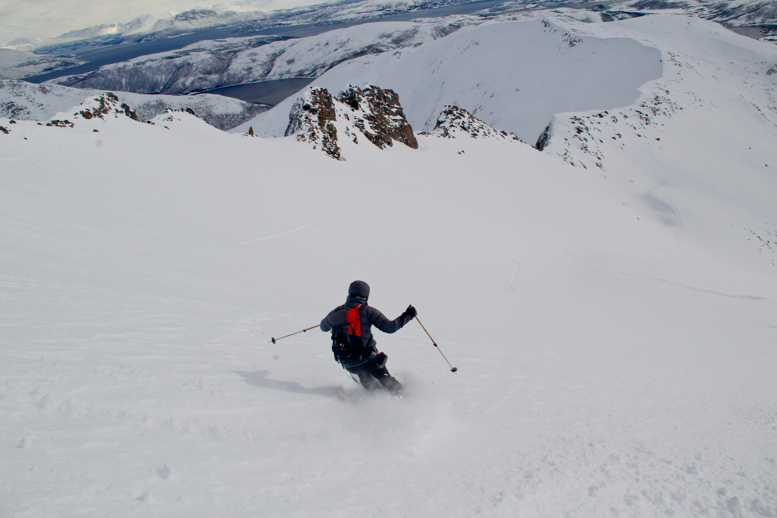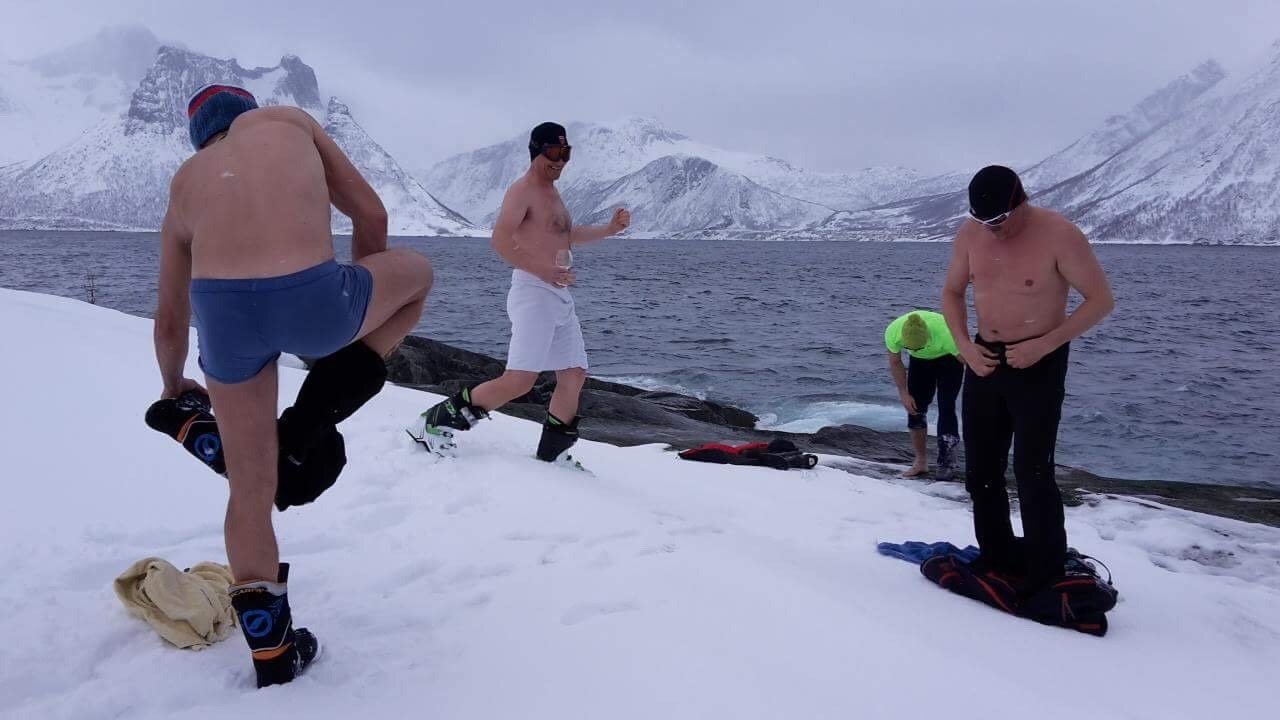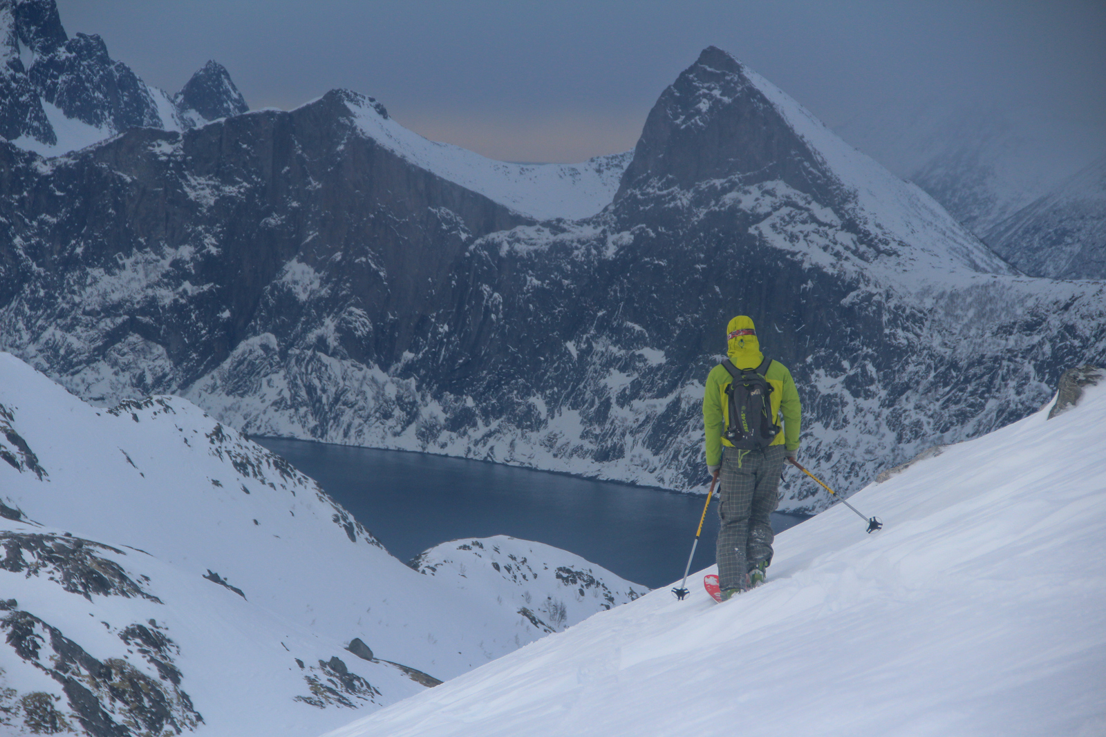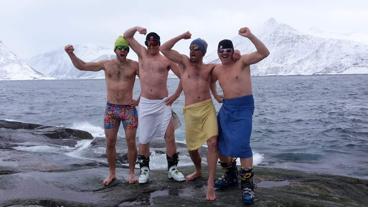 Dolgi meseci planiranja, so skoraj padli v vodo, ko nam je na Lofotih 2 dni pred odhodom pobralo sneg. Na srečo smo preko FB in prijateljev s Bric ferajna našli otok Senja. Sicer slike niso kaj prida obetale, vendar smo se odločili reskirati. Da ne bi bilo vse lepo so nam izgubili prtljago. tako smo prvo noč prećiveli na letališču Narvik, v družbi dobrega viskija, sira in kolegov s Tirolske (brez prtljage). Pot do otoka Senja naslednji dan je bila spet dogodivččina, malo pred bajto smo v trenutku lepega vremena vidli flanko in se pognali v hrib. Brin je prvič smučal v polarnem krogu, pa se je odločil da gre v kavbojkah, tako smo se vsi odpravili na prvi kucl. Itak pršič.. Vreme nad 69 vzporednikom je pač tako, megla, sneg, sonce, veter v eni uri. Naslednjih 10 dni smo dozivljali dogodivščino eno za drugo, smeh, menjava 15kg rib za liter šnopca z lokalnimi ribiči, deviške flanke, krasne ceste, lepi koluarji, RD žurka..Nekako so nas po parih dneh spoznali tudi firerji po otoku 🙂 Pivo pač v trgovino za 3 eur, Volvo 4×4 hybrid služil super., vozili ozebnik, kjer so snemali Epic tv, Tone pa ga je na hitr zgazil brez sponzorjev. Na koncu smo po mojem mnenju doživeli za moj okus najbolj odbit trip do sedaj. Uživali Jure, Brin, Fajfar, Vojc, Tone in Uroš