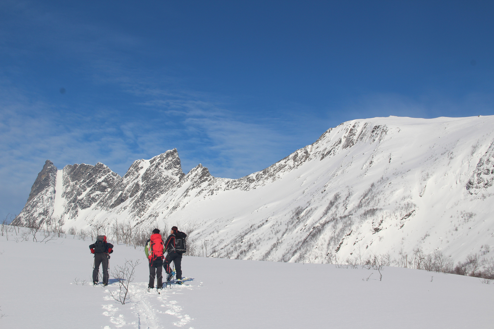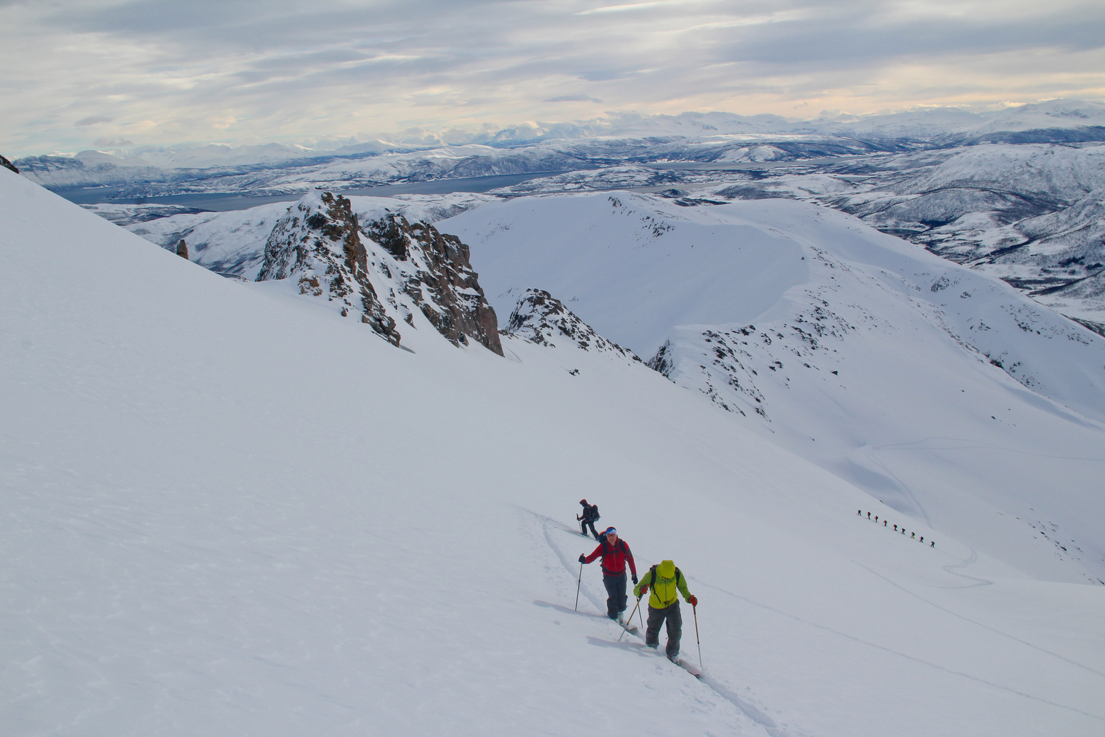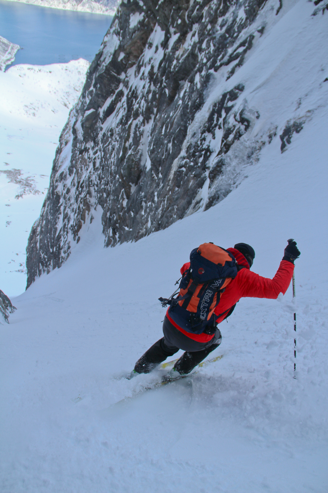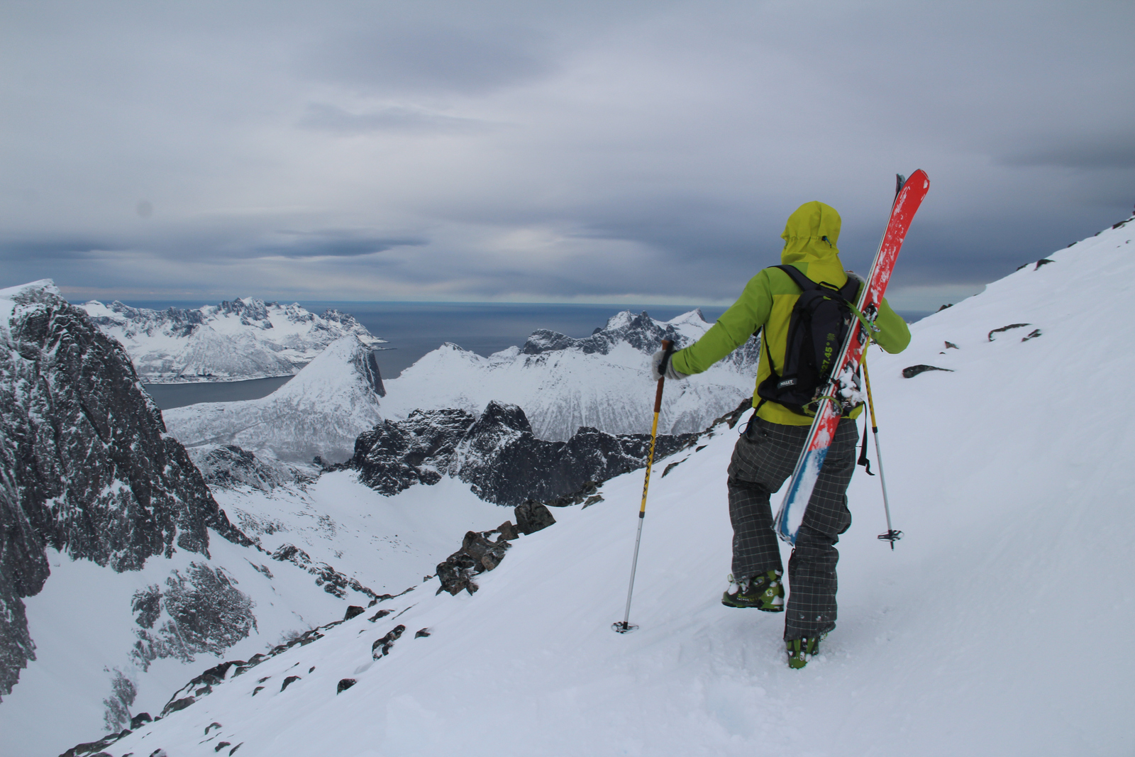 Dolgi meseci planiranja, so skoraj padli v vodo, ko nam je na Lofotih 2 dni pred odhodom pobralo sneg. Na srečo smo preko FB in prijateljev s Bric ferajna našli otok Senja. Sicer slike niso kaj prida obetale, vendar smo se odločili reskirati. Da ne bi bilo vse lepo so nam izgubili prtljago. tako smo prvo noč prećiveli na letališču Narvik, v družbi dobrega viskija, sira in kolegov s Tirolske (brez prtljage). Pot do otoka Senja naslednji dan je bila spet dogodivččina, malo pred bajto smo v trenutku lepega vremena vidli flanko in se pognali v hrib. Brin je prvič smučal v polarnem krogu, pa se je odločil da gre v kavbojkah, tako smo se vsi odpravili na prvi kucl. Itak pršič.. Vreme nad 69 vzporednikom je pač tako, megla, sneg, sonce, veter v eni uri. Naslednjih 10 dni smo dozivljali dogodivščino eno za drugo, smeh, menjava 15kg rib za liter šnopca z lokalnimi ribiči, deviške flanke, krasne ceste, lepi koluarji, RD žurka..Nekako so nas po parih dneh spoznali tudi firerji po otoku 🙂 Pivo pač v trgovino za 3 eur, Volvo 4×4 hybrid služil super., vozili ozebnik, kjer so snemali Epic tv, Tone pa ga je na hitr zgazil brez sponzorjev. Na koncu smo po mojem mnenju doživeli za moj okus najbolj odbit trip do sedaj. Uživali Jure, Brin, Fajfar, Vojc, Tone in Uroš