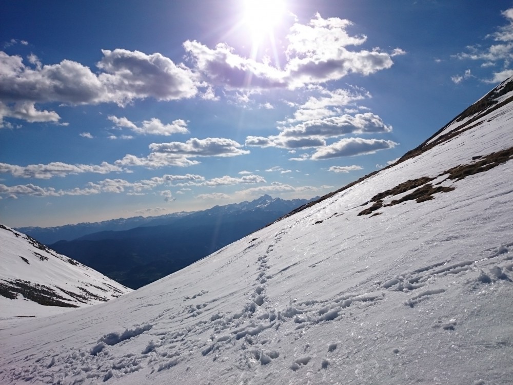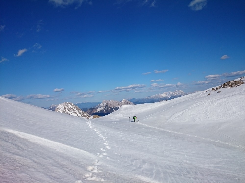 V aprilu smo sicer kar hodili in smučali po hribih, vendar ture niso bile nič posebnega. Bili smo na Voglu in okolici, na Krvavcu, po tem,ko so smučišče zaprli in ujeli tudi nekaj pršiča, ter tudi na Vitrancu, ki je takrat še omogočal smuko z vrha, vse do vasi Podkoren.