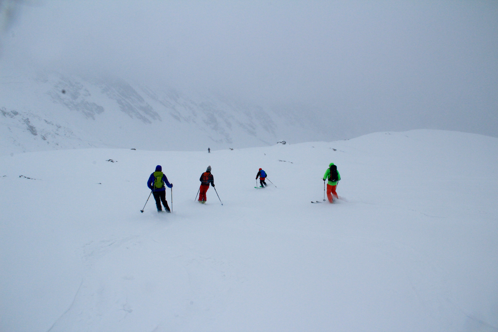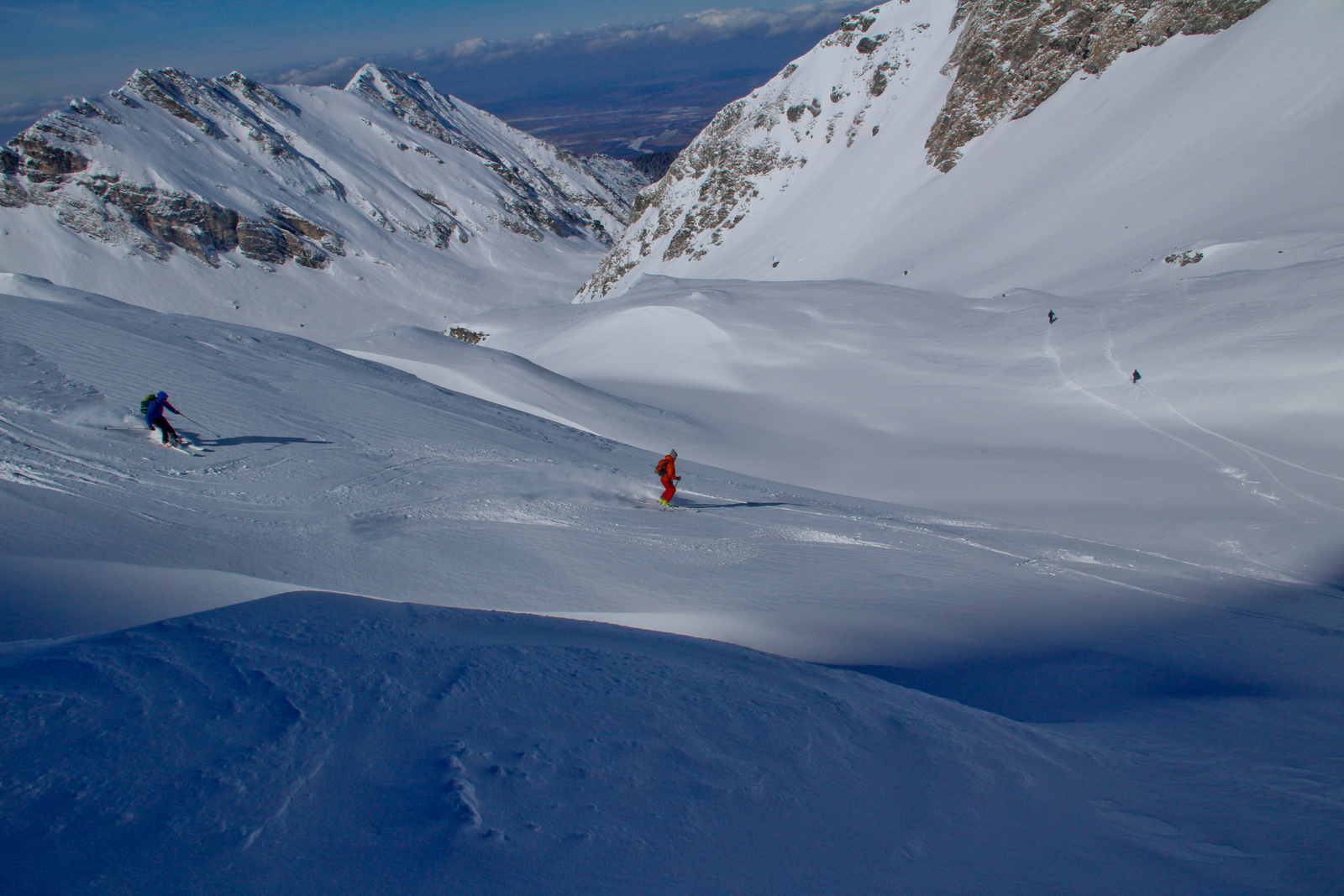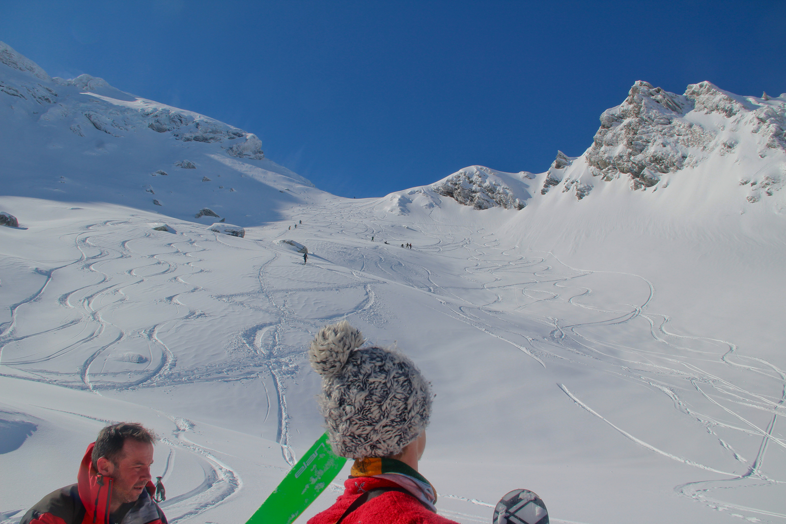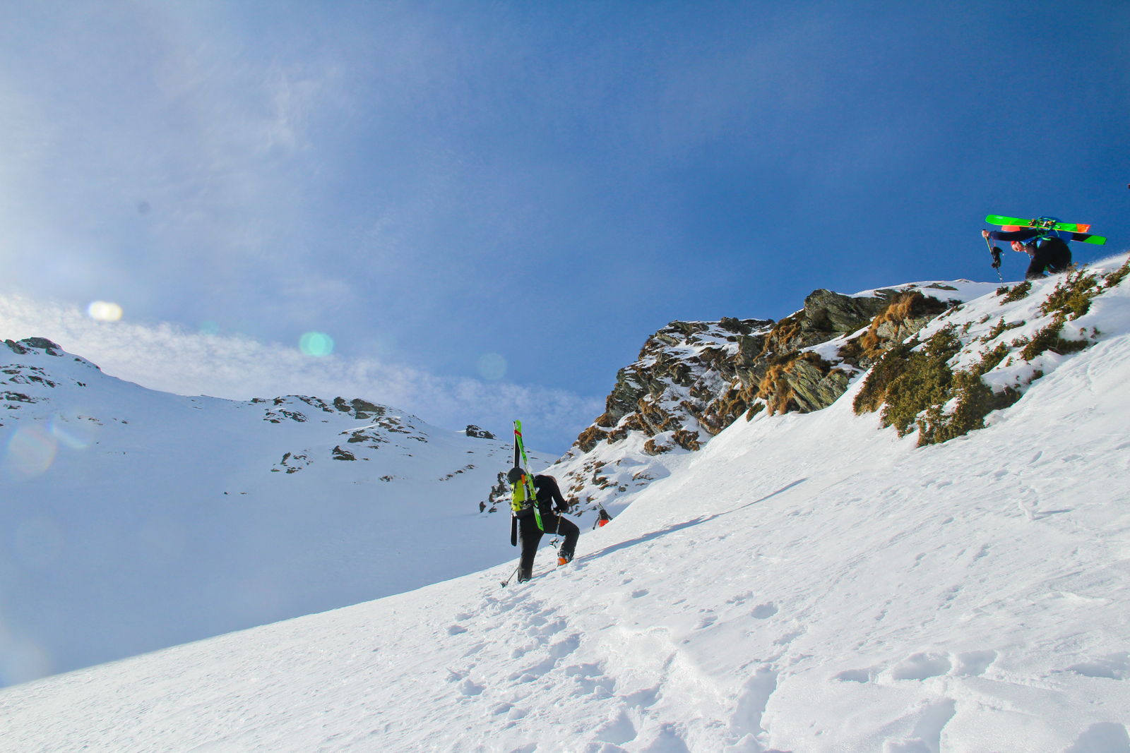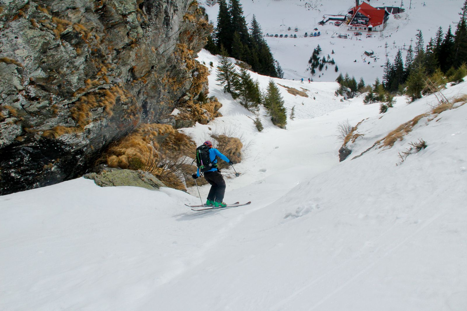 Končno prišel dan ko smo se odpeljali za 7 dni v Romunijo. Kolega Radu ki sem ga spoznal v steni El Capitana nam je organiziral bajte in odpeljali smo se 1170 km do Balea Cascade kjer je izhodišče za pristop z gondolo do Jezera Balea. Takoj so nam v oči padli koluarji in smo se zakadili v še ta zadnjega deviškega. Kolegialno gaz in odpeljali popolno flanko. Ko smo čakali na Raduja smo šli še na eno sedlo in spet perfekt smučarija. Skozi tunel smo odšli do naše bajte kjer nas je počakal Emil oskrbnik koče Balea Tunnel. To je prava gorska koča, kjer se je debata s lokalci končala pozno v noč. Drugi dan smo odšli na sever doline in spet popolna smučarija, ki pa jo je pokvarilo slabo vreme na sedlu. Noč je bila pestra s lokalci ki so imeli privat rocnkrol koncert. Tretji dan smo se zbudili v popolni jebi z vremenom. odšli smo v en strm koluar, kjer je bilo saj malo vidljivosti. Zvečer smo odšli pozdravit Raduja na drugo kočo, kjer imajo tečaj za GV za vzhodno europo. Pravi multinacionalni žur se je razvil pozno v noč, kjer smo dobili povabila za Gruzijo, Kreto, Bolgarijo, Grčijo, Ciper….. Ta poznanstva bo treba izkoristiti. Zjutraj se nam je lokalni GV ponudil da nas pospremi v dolino na pršič. Vidljivosti ni bilo smo pa plavali v poljanah pršiča. Naslednje dni smo se parkrat shatlali na gondoli do podna, vsakič razrili deviške poljane pršiča. Ko smo zaradi slabega vremena skoraj obupali pa se nam je nenadoma razjasnilo. Ker so bile razmere totalno nevarne počakali lokalce da so na bližnje sedlo nardili gas. Takrat pa se je začel stampedo smučarjev po pršiču. Na sedlu srečali lokalce iz prejšnje koče, policaja in GRS ki sta nas povabila v sosednjo deviško dolino ki smo jo razrili kot spodobi. in to 2x. Zadnji dan pakiranje in v dolino ter domov. Zaključek…. Nori hribi, prijazni ljudje, poceni udobne koče, pravo vzdušje poljane pršiča. Ne glede na vmesno polarno vreme ocena čista 10.