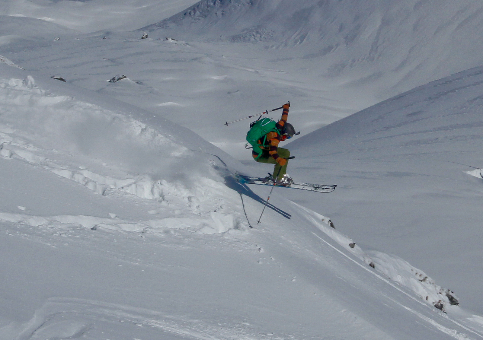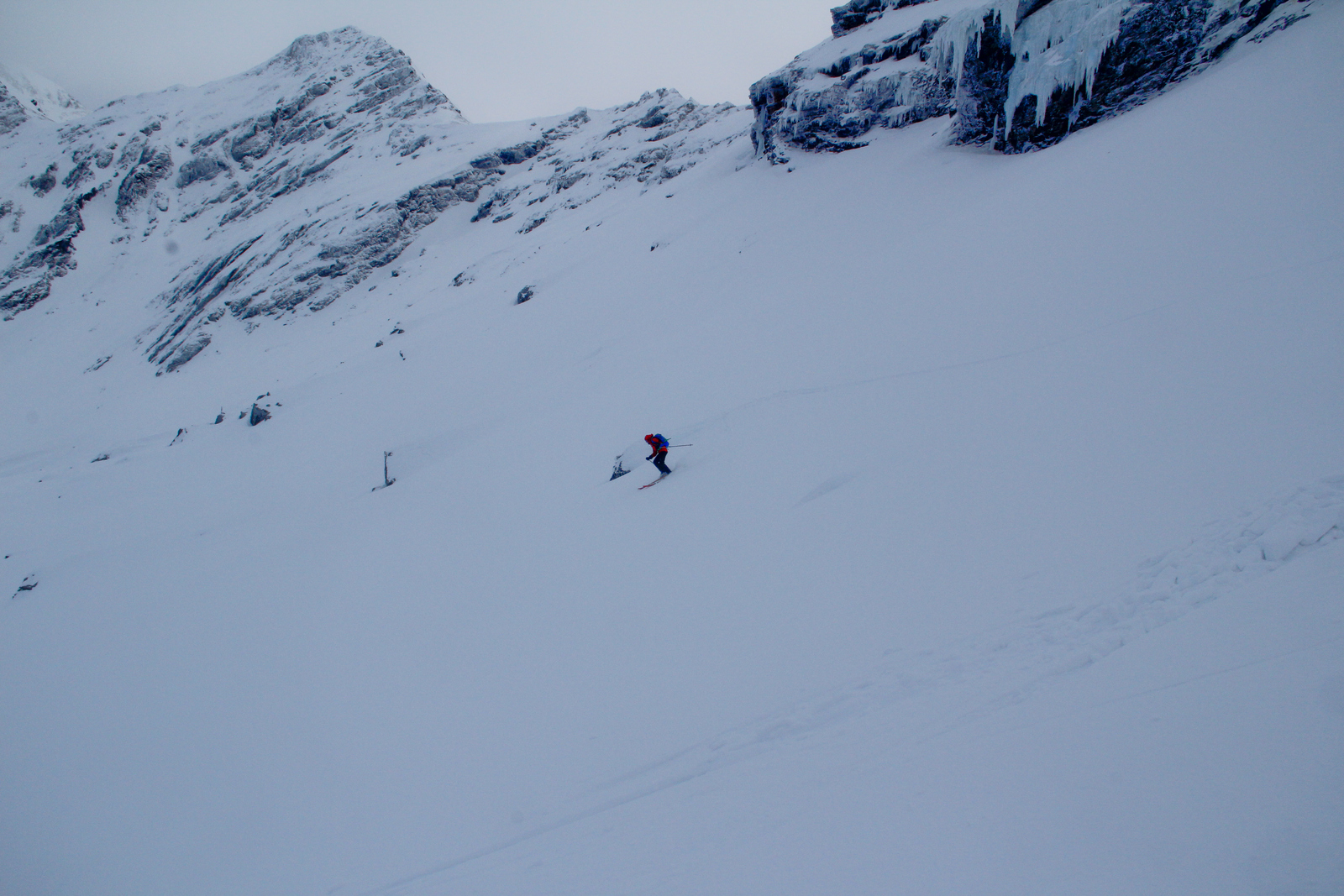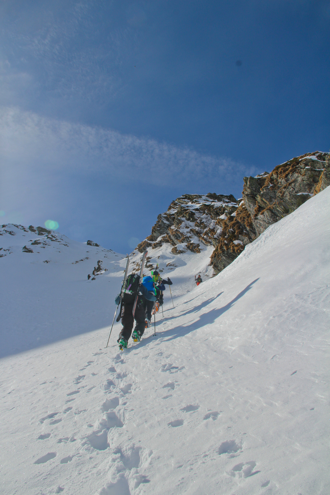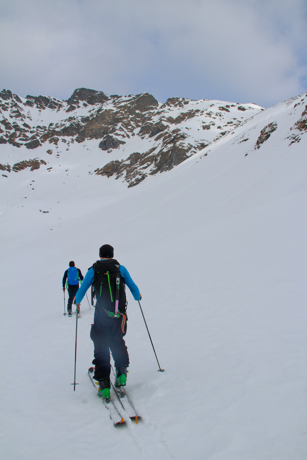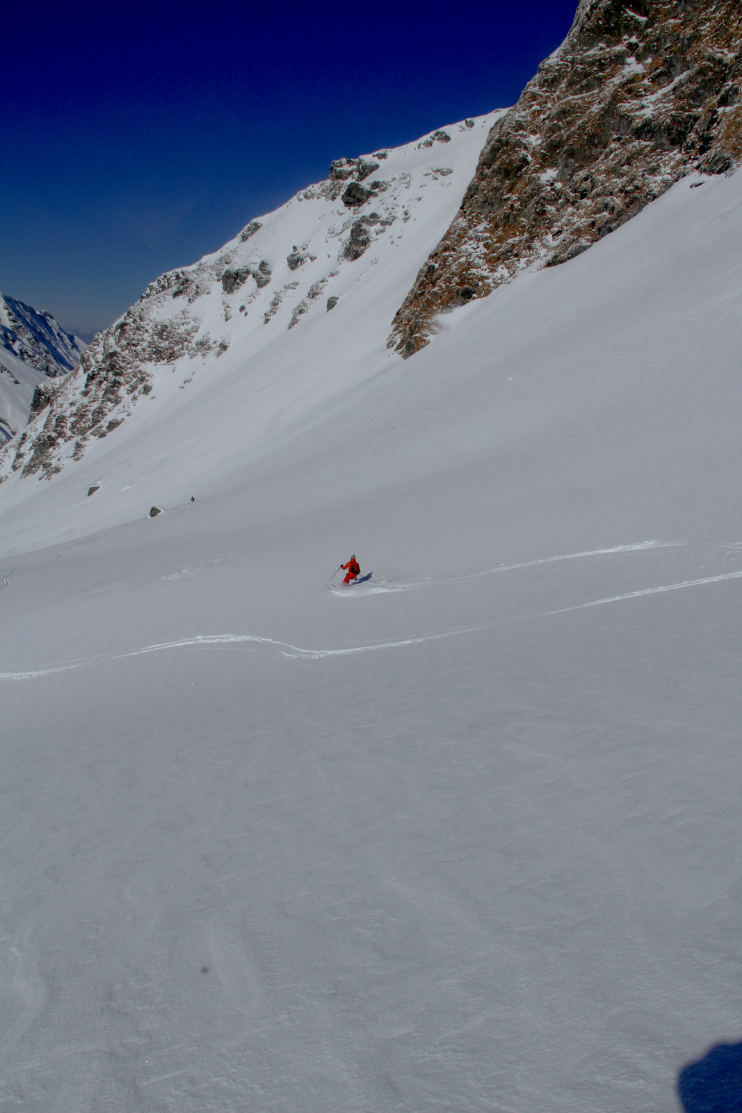 Končno prišel dan ko smo se odpeljali za 7 dni v Romunijo. Kolega Radu ki sem ga spoznal v steni El Capitana nam je organiziral bajte in odpeljali smo se 1170 km do Balea Cascade kjer je izhodišče za pristop z gondolo do Jezera Balea. Takoj so nam v oči padli koluarji in smo se zakadili v še ta zadnjega deviškega. Kolegialno gaz in odpeljali popolno flanko. Ko smo čakali na Raduja smo šli še na eno sedlo in spet perfekt smučarija. Skozi tunel smo odšli do naše bajte kjer nas je počakal Emil oskrbnik koče Balea Tunnel. To je prava gorska koča, kjer se je debata s lokalci končala pozno v noč. Drugi dan smo odšli na sever doline in spet popolna smučarija, ki pa jo je pokvarilo slabo vreme na sedlu. Noč je bila pestra s lokalci ki so imeli privat rocnkrol koncert. Tretji dan smo se zbudili v popolni jebi z vremenom. odšli smo v en strm koluar, kjer je bilo saj malo vidljivosti. Zvečer smo odšli pozdravit Raduja na drugo kočo, kjer imajo tečaj za GV za vzhodno europo. Pravi multinacionalni žur se je razvil pozno v noč, kjer smo dobili povabila za Gruzijo, Kreto, Bolgarijo, Grčijo, Ciper….. Ta poznanstva bo treba izkoristiti. Zjutraj se nam je lokalni GV ponudil da nas pospremi v dolino na pršič. Vidljivosti ni bilo smo pa plavali v poljanah pršiča. Naslednje dni smo se parkrat shatlali na gondoli do podna, vsakič razrili deviške poljane pršiča. Ko smo zaradi slabega vremena skoraj obupali pa se nam je nenadoma razjasnilo. Ker so bile razmere totalno nevarne počakali lokalce da so na bližnje sedlo nardili gas. Takrat pa se je začel stampedo smučarjev po pršiču. Na sedlu srečali lokalce iz prejšnje koče, policaja in GRS ki sta nas povabila v sosednjo deviško dolino ki smo jo razrili kot spodobi. in to 2x. Zadnji dan pakiranje in v dolino ter domov. Zaključek…. Nori hribi, prijazni ljudje, poceni udobne koče, pravo vzdušje poljane pršiča. Ne glede na vmesno polarno vreme ocena čista 10.