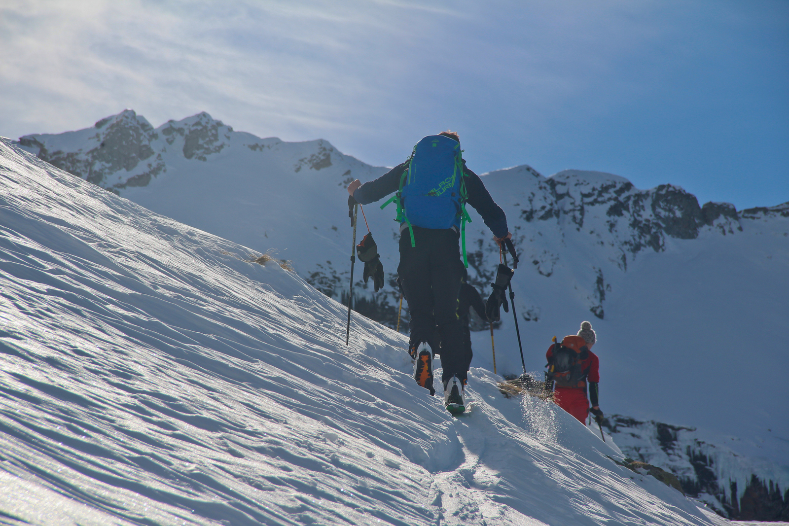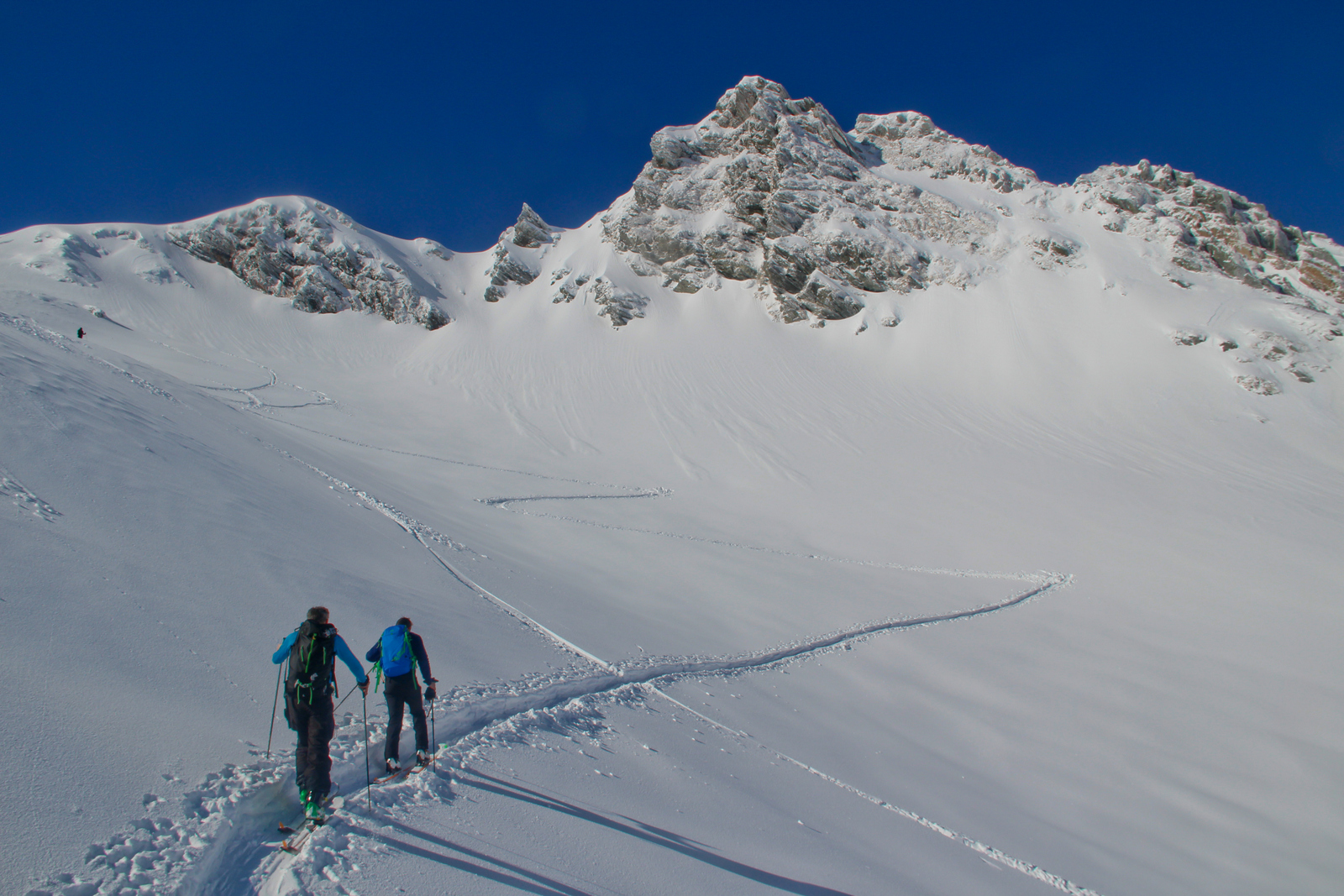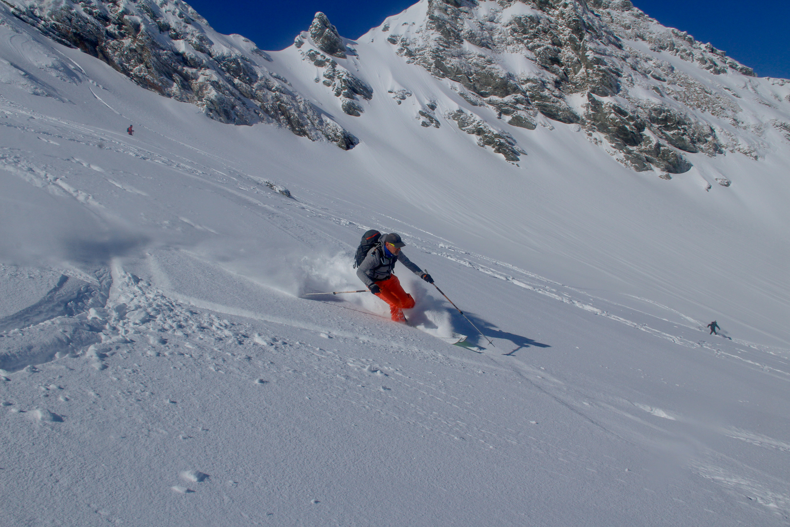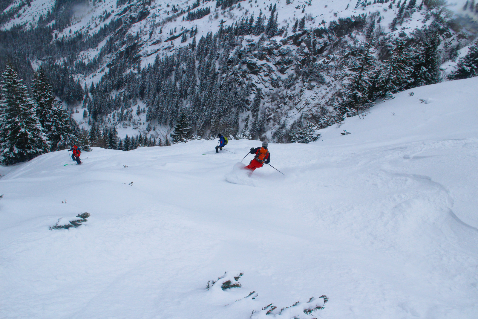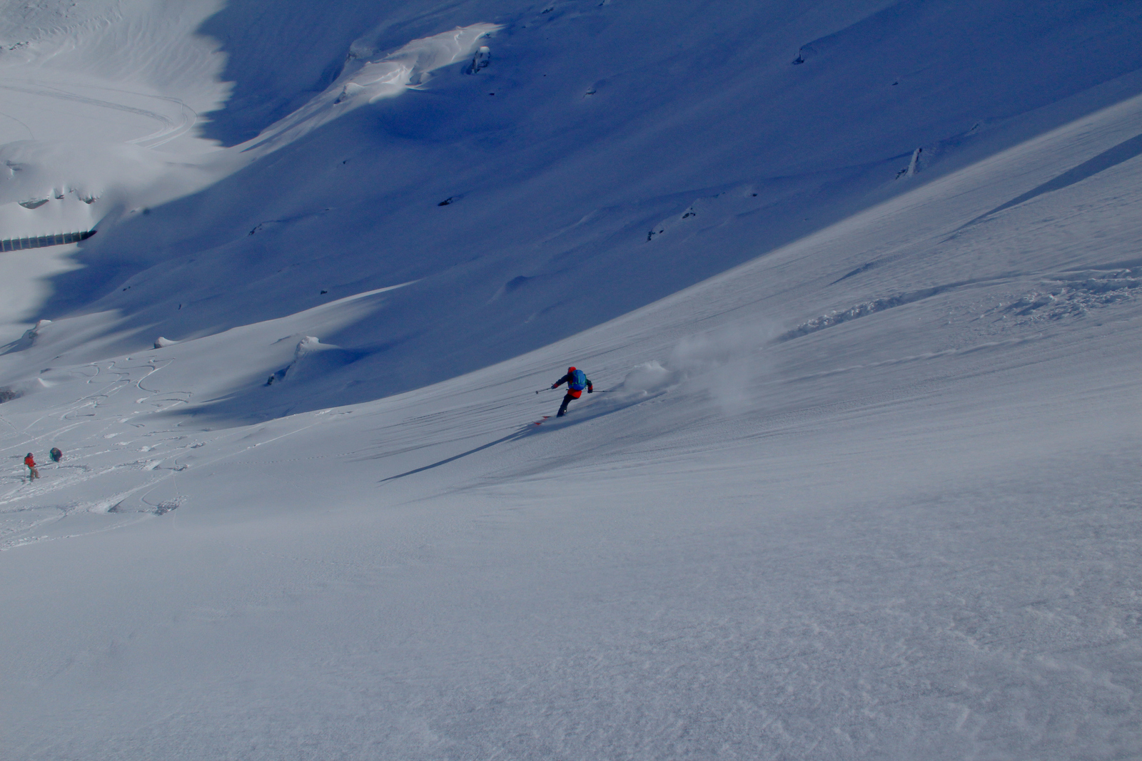 Končno prišel dan ko smo se odpeljali za 7 dni v Romunijo. Kolega Radu ki sem ga spoznal v steni El Capitana nam je organiziral bajte in odpeljali smo se 1170 km do Balea Cascade kjer je izhodišče za pristop z gondolo do Jezera Balea. Takoj so nam v oči padli koluarji in smo se zakadili v še ta zadnjega deviškega. Kolegialno gaz in odpeljali popolno flanko. Ko smo čakali na Raduja smo šli še na eno sedlo in spet perfekt smučarija. Skozi tunel smo odšli do naše bajte kjer nas je počakal Emil oskrbnik koče Balea Tunnel. To je prava gorska koča, kjer se je debata s lokalci končala pozno v noč. Drugi dan smo odšli na sever doline in spet popolna smučarija, ki pa jo je pokvarilo slabo vreme na sedlu. Noč je bila pestra s lokalci ki so imeli privat rocnkrol koncert. Tretji dan smo se zbudili v popolni jebi z vremenom. odšli smo v en strm koluar, kjer je bilo saj malo vidljivosti. Zvečer smo odšli pozdravit Raduja na drugo kočo, kjer imajo tečaj za GV za vzhodno europo. Pravi multinacionalni žur se je razvil pozno v noč, kjer smo dobili povabila za Gruzijo, Kreto, Bolgarijo, Grčijo, Ciper….. Ta poznanstva bo treba izkoristiti. Zjutraj se nam je lokalni GV ponudil da nas pospremi v dolino na pršič. Vidljivosti ni bilo smo pa plavali v poljanah pršiča. Naslednje dni smo se parkrat shatlali na gondoli do podna, vsakič razrili deviške poljane pršiča. Ko smo zaradi slabega vremena skoraj obupali pa se nam je nenadoma razjasnilo. Ker so bile razmere totalno nevarne počakali lokalce da so na bližnje sedlo nardili gas. Takrat pa se je začel stampedo smučarjev po pršiču. Na sedlu srečali lokalce iz prejšnje koče, policaja in GRS ki sta nas povabila v sosednjo deviško dolino ki smo jo razrili kot spodobi. in to 2x. Zadnji dan pakiranje in v dolino ter domov. Zaključek…. Nori hribi, prijazni ljudje, poceni udobne koče, pravo vzdušje poljane pršiča. Ne glede na vmesno polarno vreme ocena čista 10.