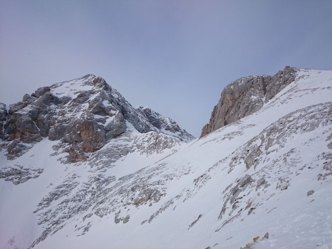 Včeraj sem se zapeljal v dolini Krme, kjer je sicer malo snega, vendar povsem dovolj za hojo v pancarjih. Smuči sem pritrdil na nahrbtnik in se skozi gozd in ruševje podal vse do Malega Polja. Do tu je bila lepo uhojena pot. Na Malem polju se količina snega poveča, kljub temu je bila pot do Kalvarije dokaj dobro uhojena. Višje nad 2100m se je prediralo malo bolj, tako da je morda bolje zlesti na smuči. Kredarico sem dosegel iz leve, nekako po letni poti. Pri vremenarjih sem pomalcal in zreduceral težno, tako da sem nadaljeval proti vrhu v bolj okretnem stilu. Pot preko malega Triglava je bila lepa in stopinje so bile dobro narejene. Večina poti je pod snegom, tako da sem le malo praskal po skalah. Večina jeklenice in klini so bili zunaj snežne odeje, tako sem si lahko zelo dobro pomagal. Na vrhu sem bil sam in vrjetno edini včeraj, tako da je bilo kar fino. Sestop mi prav tako ni delal večjih težav, tako da sem bil hitro pri Kredarici. Po kavici sem si pripel nove Slatnar Carbon turnosmučarske vezi, Elan Lhotse smuči in jo ocvrl v dolino. Smučal sem po Kalvariji in naprej proti Kurici. Sneg je bil malo kložast in v stilu: spihan napihan, ampak dober za smučanje. Malo sem se povzpel in se spustil v Kurico, tu je bil sneg trd (sren), ki je omogočal super smučarijo. Nižje sem malo prečil v desno kjer sem pred Pasterci našel super pršič. Naprej sem smučal ob običajni poti vse do konca Malega polja. Sledil je sestop do avta. Nabralo se je okoli 1000 višinskih metrov smučanja in okoli 2000 skupno.