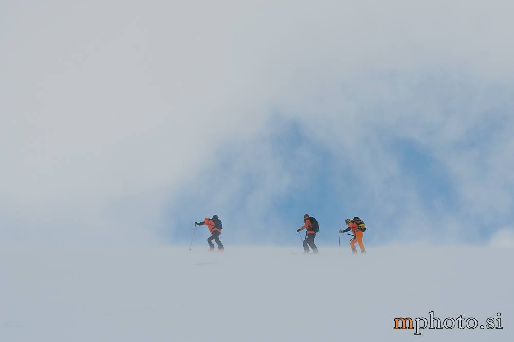 Tokrat spet v Mallnitz. Nad planino Jamnig srečali Slavca in kamerade. Vse zabasano, veter, občasno naletaval sneg.
