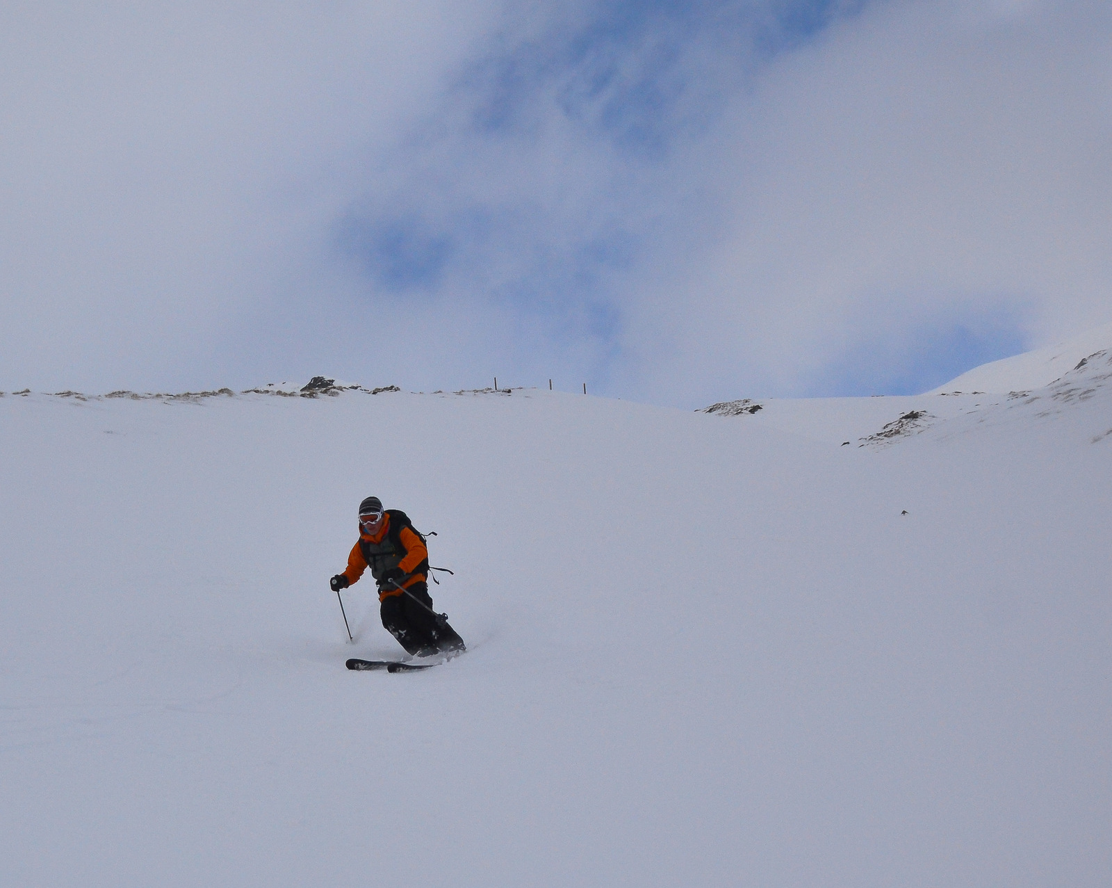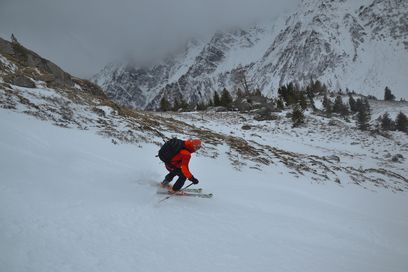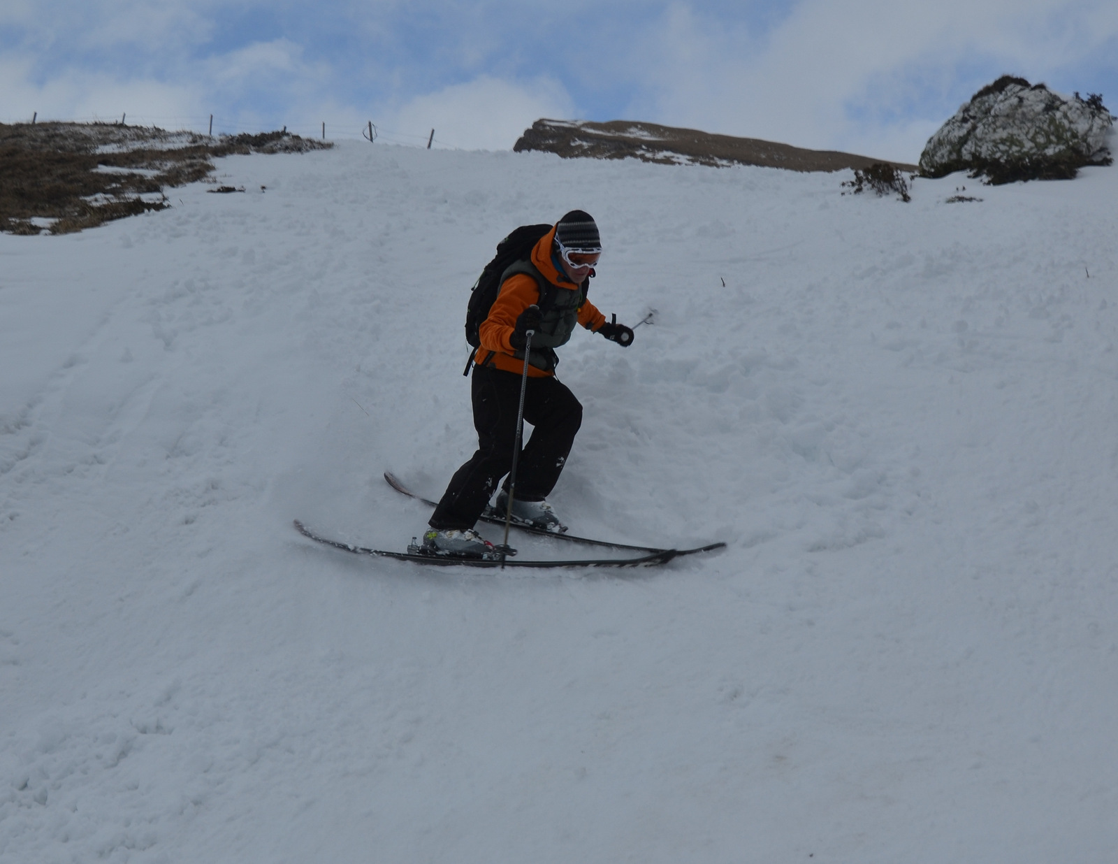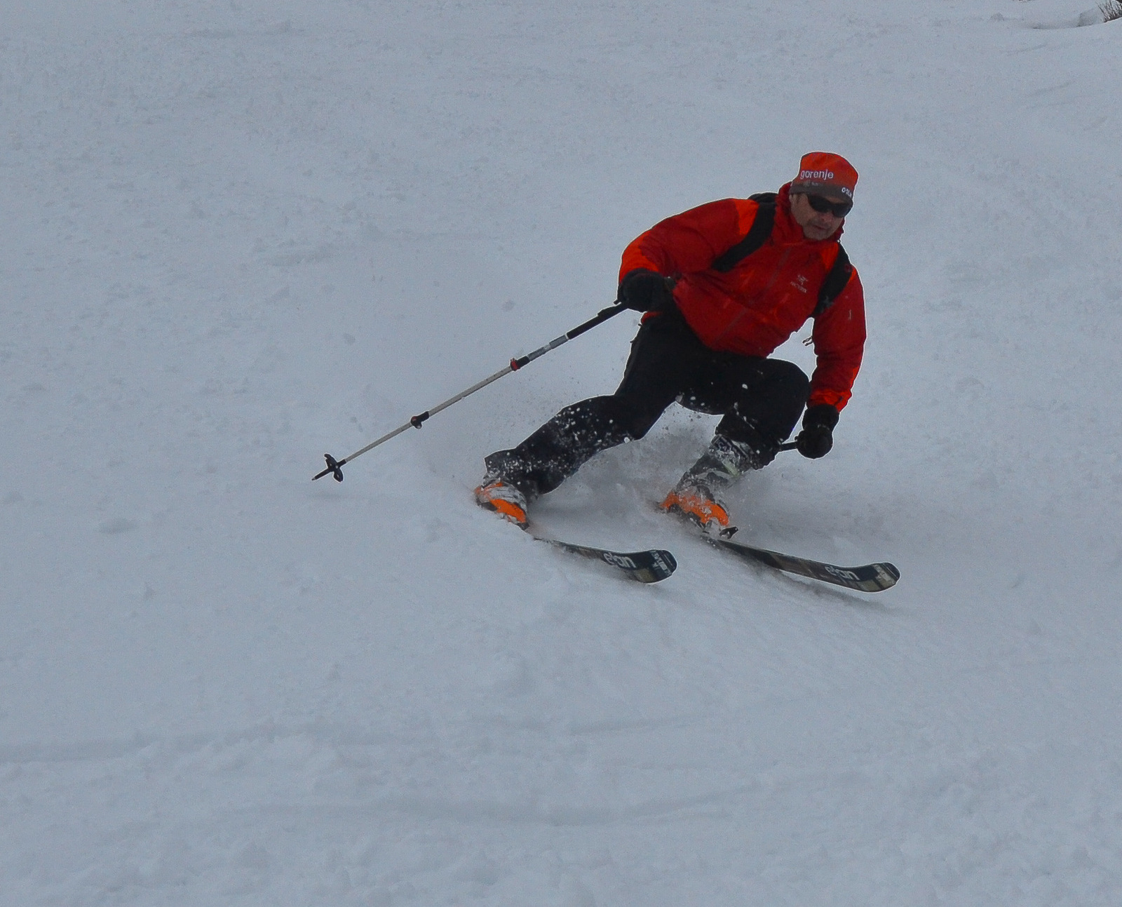 Sprva imeli namen proti Feldseekopf, vendar zaradi megle in oblakov spremenili plan in šli naprej po dolini. Sneg odpihnil večino pršiča, zato nam Romaten še enkrat ni prav nič dišala. Zavili smo proti Ebenecku na sedlo. Flanka je bila kložasta zato se povzpeli na sosednji vrh. Smučarija v grabnih krasna. Rehidracija v krasni bruni na parkplacu. Uživali Jure, Žiga, Miro in Domen