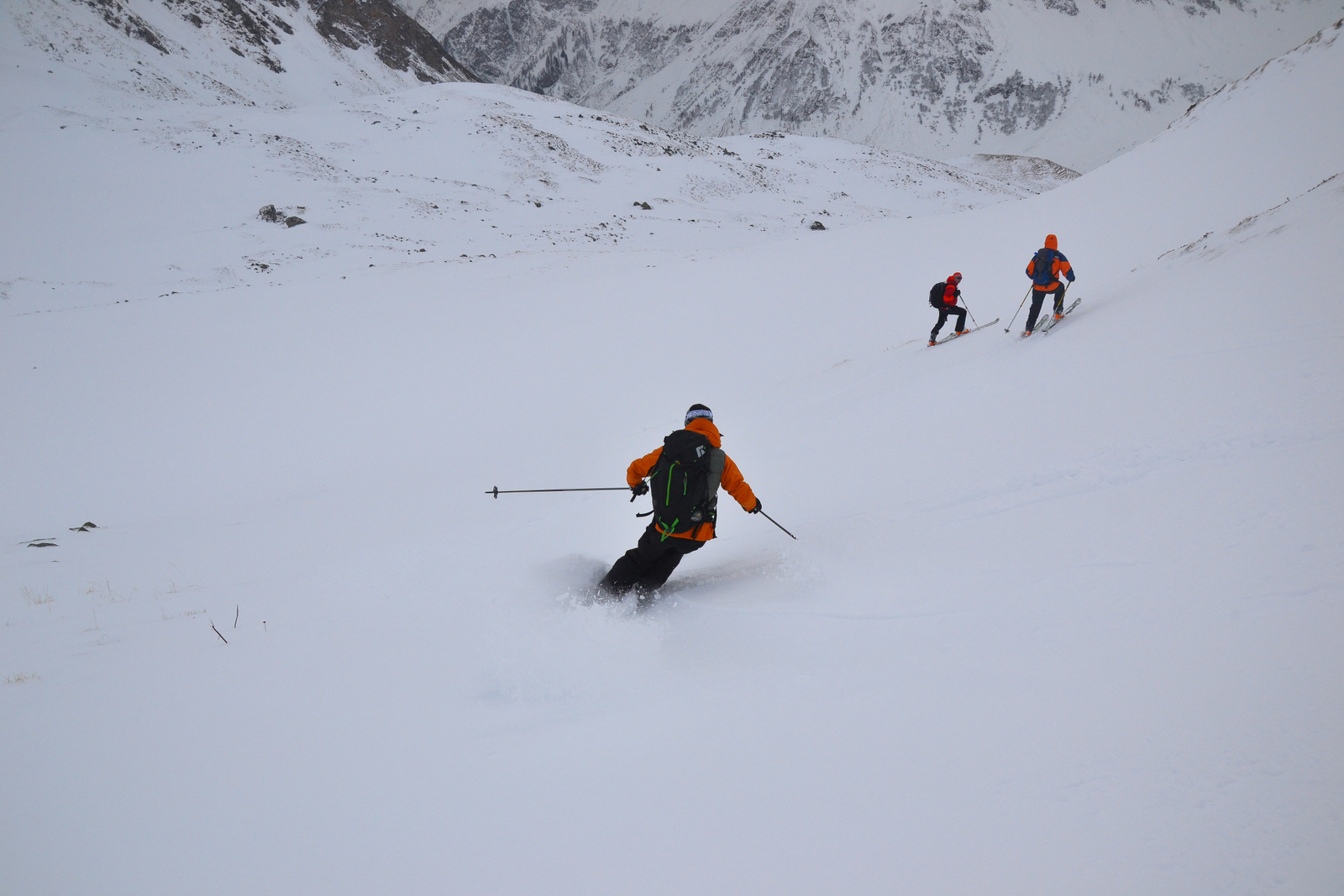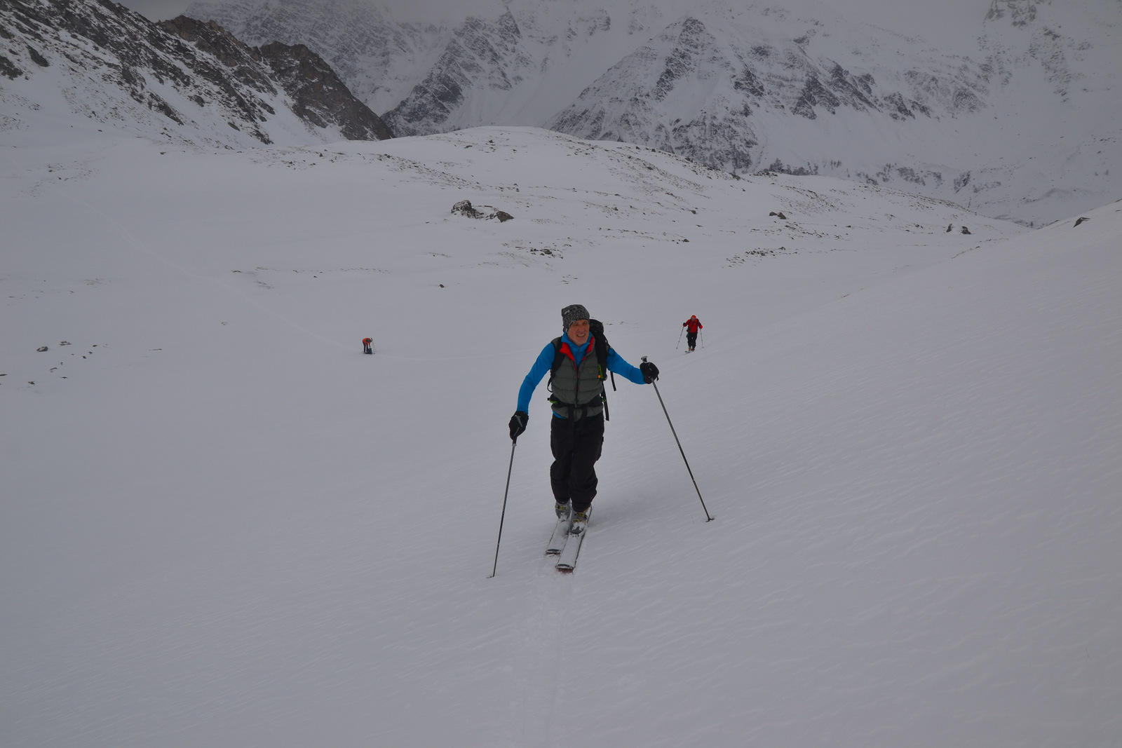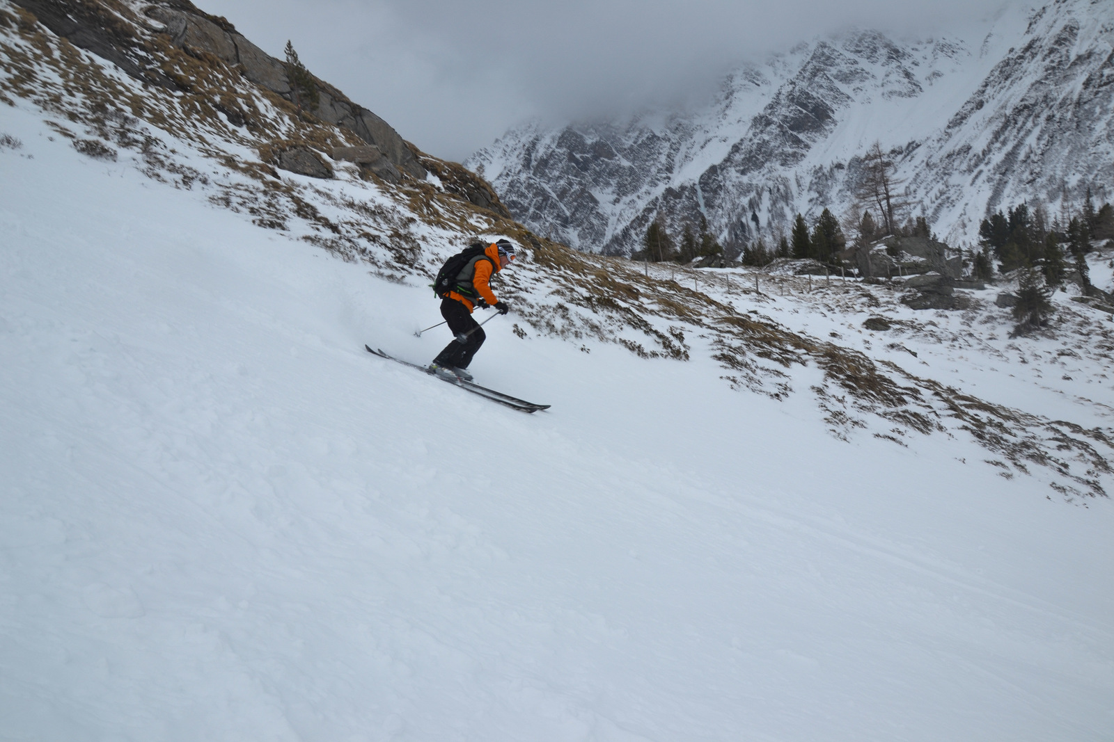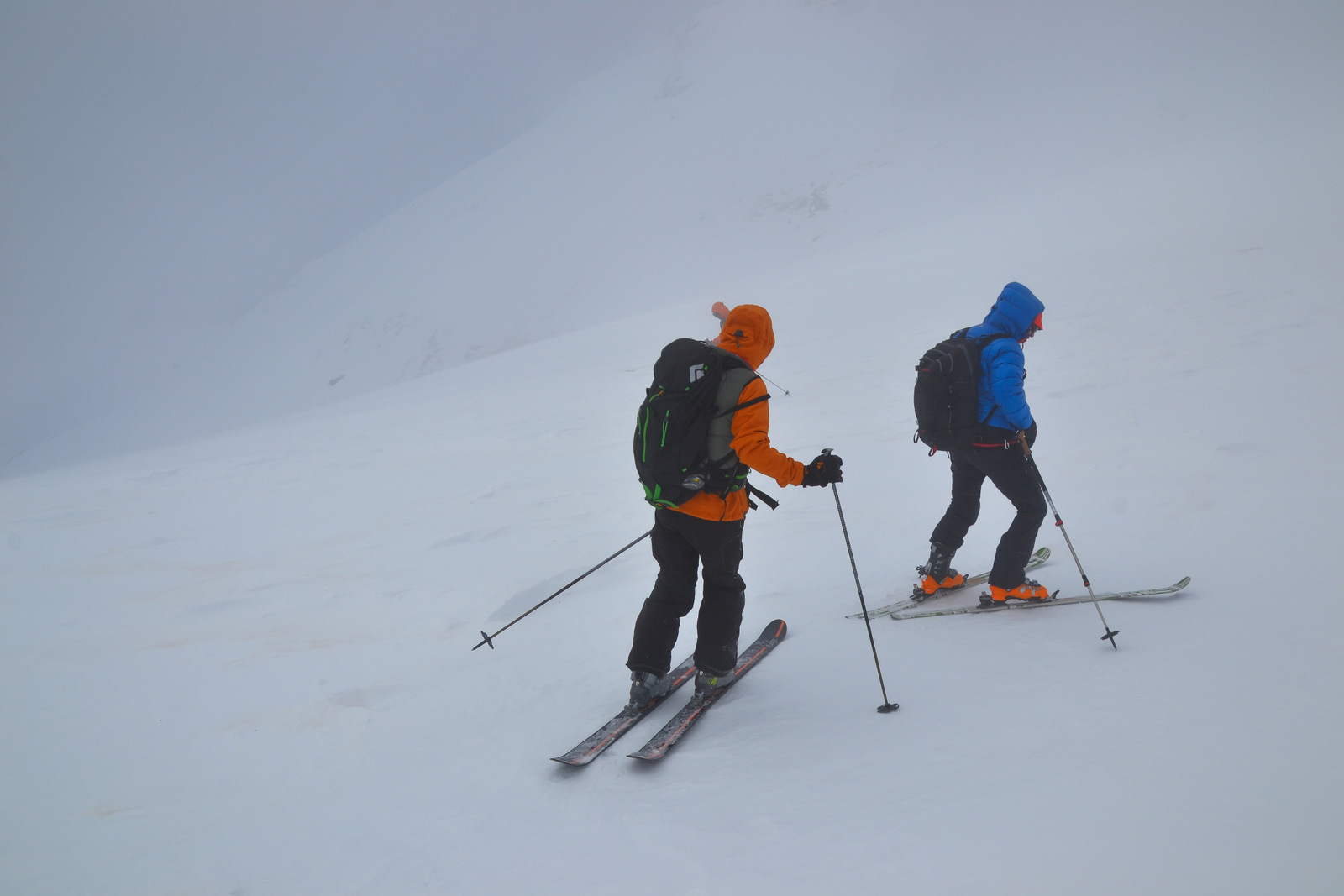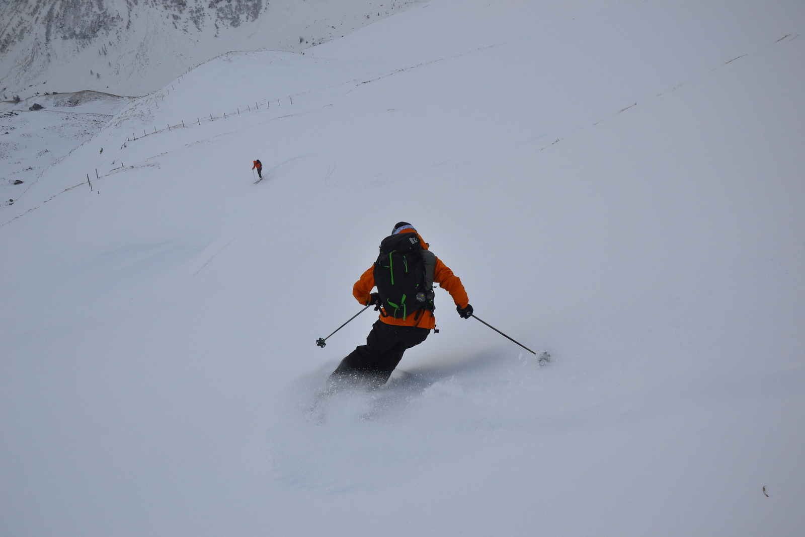 Sprva imeli namen proti Feldseekopf, vendar zaradi megle in oblakov spremenili plan in šli naprej po dolini. Sneg odpihnil večino pršiča, zato nam Romaten še enkrat ni prav nič dišala. Zavili smo proti Ebenecku na sedlo. Flanka je bila kložasta zato se povzpeli na sosednji vrh. Smučarija v grabnih krasna. Rehidracija v krasni bruni na parkplacu. Uživali Jure, Žiga, Miro in Domen